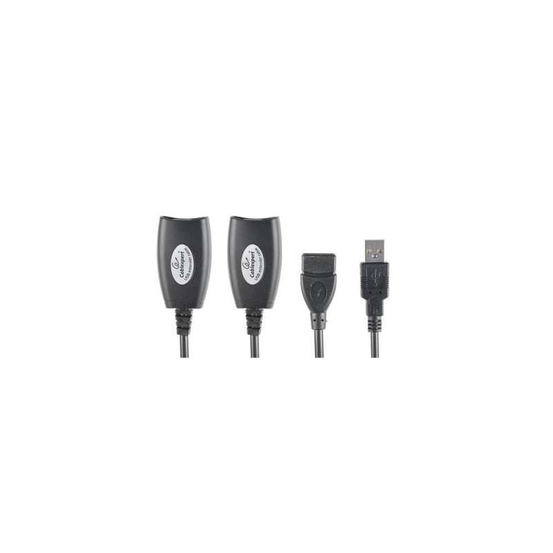 Allows extending USB cables up to 30 m<br>Works with CAT6 or CAT5E LAN cables<br>No software or drivers required<br>No extra power supply requiredGembird USB extender up to 30 m. Product colour: Black, Certification: CE, RoHS. Cables included: USB, Package width: 125 mm, Package depth: 200 mm. Cable length: 0.17 m