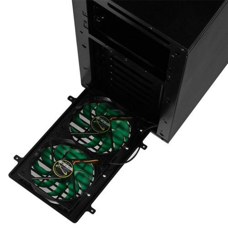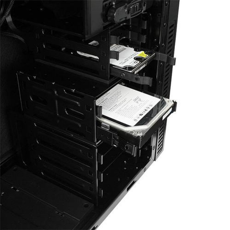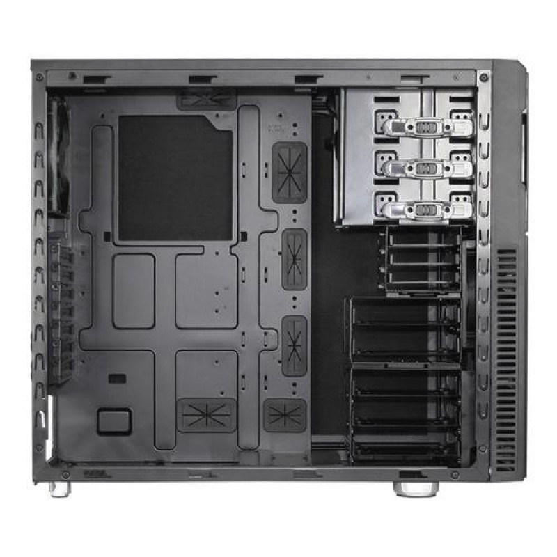 With the Deep Silence 3 we proudly present a classic midi tower from the next generation of Silent PC cases.<br><br>The Deep Silence 3 offers an elegant design and harmonious, meaningful features. The middle HDD cage is removable, allowing the easy installation even of very long graphics cards.<br><br>The upper part of the front offers a foam-isolated door. Three 5.25 inch bays can be found behind the door, as well as the 2-channel fan control for up to six fans and the reset button. The door is equipped with a magnet to ensure a fast closing and easy opening.<br><br>On the front of the top cover you can find the I/O-panel. It offers 2 x USB 3.0, 1 x USB 2.0, as well as Mic and Audio connectors. This ensures that appropriate devices can be connected quickly and easily.<br><br>You can mount ATX, Micro-ATX and Mini-ITX motherboards in the Deep Silence 3 case. Thanks to the modular HDD cage you can install VGA cards with a maximum length of 430 mm. If you want to employ all HDD cages, you can install cards of up to 345 mm in length.<br><br><b>Almost noiseless</b><br><br>The guiding principle in the development of the Nanoxia case series has always been the requirement to create cases as quiet as possible at the lowest system temperatures.<br><br>Side panel and top cover of the Deep Silence 3 are fitted with specially designed, noise reducing insulation materials. he whole concept is designed to minimize and absorb any resulting noises. The solid front door contributes significantly to the most effective noise reduction.<br><br>The hard disk drives of the Deep Silence 3 are mounted using rubber suspension, in order to absorb vibrations that might arise during startup and to minimize annoying background noises. The power supply rests on rubber mounts, with a suspension frame available on the back. The case stands on rubber suspended feet – vibrations are completely compensated.<br>The Deep Silence 3 is manufactured from 0.6 mm thick steel. By using the highest quality materials, optimal noise insulation is ensured while providing a very stable case.<br><br>Also responsible for the quietness of the case are the three pre-installed 120 mm Deep Silence fans. The fans are optimized for the best possible mix of silence and cooling capacity. The Deep Silence 3 case is fitted with a 2-channel fan control for up to 6 fans in order to adjust the air flow to the individual needs of the user.<br><br>The Nanoxia Deep Silence 3 is equipped with two Nanoxia VentCovers. They close the 120/140 mm fan openings in the top cover. Thus, you can choose between improved cooling of the system by incorporating further case fans or improved sound insulation, by leaving the VentCover in place. The developers’ objective was to offer the user a broad variety of options.<br><br><b>Intelligent ventilation system</b><br><br>Three high-quality case fans are pre-installed. Two 120 mm fans are mounted behind the front cover, rotating at a maximum speed of 1,300 rpm. Another Deep Silence 120 mm fan is located at the back of the case. At 14.2 dB(a), the Nanoxia Deep Silence 120 mm fans generate an air flow of about 60.1 CFM and a static air pressure of 1.27 mm H²O.<br><br>The integrated fan control can manage up to six fans, allowing an individual to optimize settings to balance low system temperatures and the lowest possible noise levels, even at a full fan assembly.<br><br>Two additional 120/140 mm fans can be mounted under the top cover in order to imrpove heat dissipation. Finally, you can install a 120 or 140 mm fan at the bottom of the case - the secondary HDD cage holder needs to be removed for this. Front and cottom are equipped with easy to clean dust filters.Nanoxia Deep Silence 3 - Midi Tower - ATX. Form factor: Midi Tower, Type: PC, Product colour: Black. Power supply location: Bottom. Front fans installed: 2x 120 mm, Front fans diameters supported: 120 mm, Rear fans installed: 1x 120 mm. Supported HDD sizes: 2.5,3.5,5.25". Width: 207 mm, Depth: 520 mm, Height: 465 mm