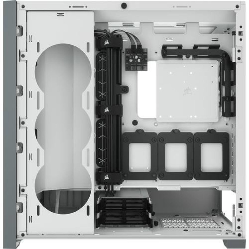 The CORSAIR 5000D AIRFLOW is a mid-tower ATX case that shows off your PC, and not its cables. Hidden cable management and an airflow-optimized front panel make building a clean, cool PC easy, with two included CORSAIR AirGuide fans.<br><br>MID-TOWER ATX CASE<br><b>FOR AN IMMACULATE BUILD THAT KEEPS ITS COOL</b><br>The CORSAIR 5000D AIRFLOW is a mid-tower ATX case with easy cable management for a clean build, with room for a 360mm push pull radiator, a high-airflow front panel, and two included CORSAIR AirGuide fans for concentrated airflow.<br><br><b>Clean and Cool</b><br>An optimized steel front panel delivers massive airflow to your system for maximum cooling.<br><br><b>Maximum cooling potential</b><br>A spacious interior fits up to 10x 120mm or 4x 140mm cooling fans, along with multiple radiators including up to a 360mm in front or side and a 360mm push/pull in the roof.<br><br><b>There's no replacement for displacement</b><br>The 5000D AIRFLOW isn’t your run-of-the-mill, standard mid-tower ATX case. Its brilliantly engineered interior offers incredible expansion capability for liquid cooling.<br><br><b>Powerful directed Airflow</b><br>Equipped with two CORSAIR AirGuide 120mm fans featuring anti-vortex vanes to concentrate airflow and enhance cooling.<br><br><b>Take command of your cooling</b><br>A PWM fan repeater controls the included fans, with connections for up to six in total. Reduce fan speed when you want to keep your system quiet, or increase when you want to push its performance, all from a single 4-pin PWM header on your motherboard.<br><br><b>Extreme Cooling</b><br>Maximum Cooling Potential: A spacious interior fits up to 10x 120mm or 4x 140mm cooling fans, along with multiple radiators including up to a 360mm in front and a 360mm push/pull in the roof.<br><br><b>Modern Front Panel I/O</b><br>Puts your connections within easy reach, including a USB 3.1 Type-C Port, 2x USB 3.0 port, and a combination audio/microphone jack.<br><br><b>vertical gpu mount ready</b><br>With included vertical PCIe slots and a screw mount for a CORSAIR PCI-Express 3.0 extension cable (sold separately), you can show off your GPU and keep it secure at the same time.Corsair 5000D AIRFLOW. Form factor: Midi Tower, Type: PC, Product colour: White. Power supply location: Bottom, Supported power supply form factors: ATX. Front fans installed: 1x 120 mm, Front fans diameters supported: 120,140 mm, Side fans diameters supported: 120 mm. Supported HDD sizes: 3.5", SSD form factor: 2.5". Width: 245 mm, Depth: 520 mm, Height: 520 mm