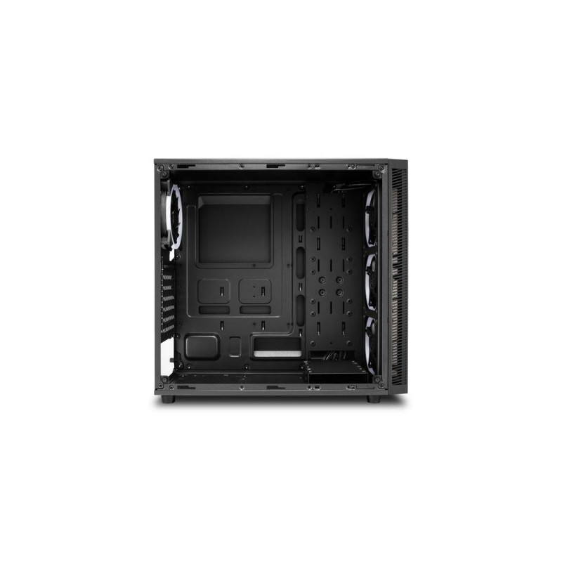 With the TG4M RGB, we have given the TG4 an air-permeable mesh front panel and four powerful RGB fans. This means that the housing is always well cooled, even under tough conditions. Moreover, this PC case leaves very little left to be desired: Despite its compact size, it still satisfies gamers who have high demands by providing room even for larger components. At the same time, it takes up noticeably little space on the tabletop.<br><br>Equipped to be Cool. The air-permeable mesh front enables the constant ventilation of the entire case. Three 120 mm RGB LED fans at the front of the case and another on the rear panel all ensure the proper cooling.<br><br>Fully Visible Hardware. The front panel made of black mesh and the side panel made of tempered glass give the TG4M RGB its stylish gaming look. Meanwhile, the hardware, which is displayed in its glass showcase, can be marveled. The LED fans also provide an atmospheric illumination of the installed components.<br><br>Uncompromisingly Compact. The design of the TG4M RGB does not only dispense with unnecessary details on its outside. It is deliberately designed to be as compact as possible, while also ensuring that there is sufficient space for common hardware components. Graphics cards with a length of up to 37.5 cm will fit into the TG4M RGB, as well as CPU coolers with a height up to 16 cm, and power supplies with a length up to 26.5 cm.<br><br>Plenty of Room for Data Storage. The TG4M RGB offers numerous installation options for data storage drives. A total of up to two 3.5" HDDs and up to four SSDs can be installed. All data storage drives can be installed quickly and easily via the screw slots in the mainboard tray and also using the HDD/SSD cage on the bottom of the case.<br><br>Neat and Tidy. Numerous cable pass-throughs in the mainboard tray ensure that cables simply disappear from view. So that the TG4M RGB stays free of dust and dirt, there is a removable dust filter behind the fans of the front panel.Sharkoon TG4M RGB. Type: PC, Product colour: Black, Supported motherboard form factors: ATX, micro ATX, Mini-ITX. Power supply location: Bottom. Front fans installed: 3x 120 mm, Front fans diameters supported: 120 mm, Rear fans installed: 1x 120 mm. Supported HDD sizes: 2.5,3.5". Width: 200 mm, Depth: 455 mm, Height: 430 mm