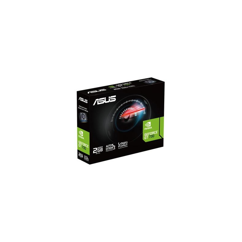 <b>Big Productivity in a Small Package</b><br>The ASUS GeForce® GT 730 is a low-profile, compact graphics card that enables multi-monitor productivity.<br><br><b>Single-slot Design<br>So much room</b><br>A compact design increases compatibility with other PCIe peripherals and even allows multiple ASUS GT 730s to be stacked in a single system.<br><br><b>Supports 3 Displays</b><br>ASUS GeForce GT 730 is a compact graphics card with three outputs (HDMI, DVI and D-Sub) that can support up to three displays at the same time for convenient multitasking.<br><br><b>Auto−Extreme Technology<br>Precision automated manufacturing</b><br>Auto-Extreme Technology is an automated manufacturing process that sets new standards in the industry by allowing all soldering to be completed in a single pass. This reduces thermal strain on components and avoids the use of harsh cleaning chemicals, resulting in less environmental impact, lower manufacturing power consumption, and a more reliable product overall.<br><br><b>GPU Tweak II<br>Monitor, tweak, and tune</b><br>The ASUS GPU Tweak II utility takes graphics card tuning to the next level. It allows you to tweak critical parameters including GPU core clocks, memory frequency, and voltage settings, with the option to monitor everything in real-time through a customizable on-screen display. Advanced fan control is also included along with many more features to help you get the most out of your graphics card.ASUS GT730-2GD3-BRK-EVO. Graphics processor family: NVIDIA, Graphics processor: GeForce GT 730. Discrete graphics card memory: 2 GB, Graphics card memory type: GDDR3, Memory bus: 64 bit, Memory clock speed: 1800 MHz. Maximum resolution: 3840 x 2160 pixels. OpenGL version: 4.6. Interface type: PCI Express 2.0. Cooling type: Active, Number of fans: 1 fan(s)
