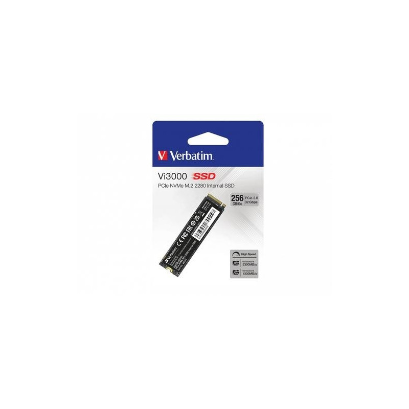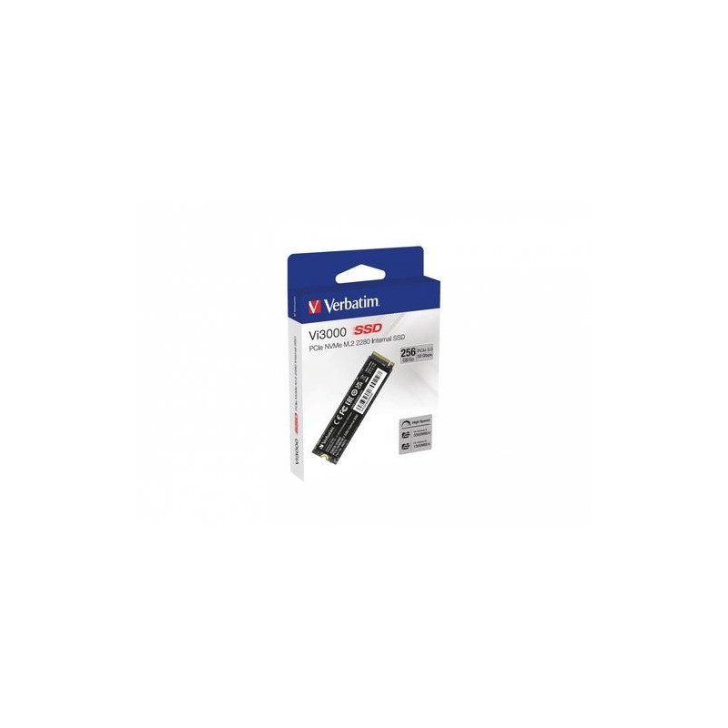 <b>The Verbatim Vi3000 M.2 PCIe NVMe™ SSD: Your Ultimate Upgrade Solution</b><br><br>Experience lightning-fast speed and uncompromising reliability with the Verbatim Vi3000 M.2 PCIe NVMe™ SSD. Engineered with cutting-edge technology, the Vi3000 delivers outstanding performance with read speeds of up to 3,100 MB/s and write speeds of up to 2,200 MB/s, making it up to six times faster than traditional SATA-based SSDs. With read IOPS of up to 150,000 and write IOPS of up to 110,000, this SSD is perfect for demanding applications, such as video editing, gaming, and content creation.<br><br>With its high-speed performance, durability, and the latest NVMe™ technology, the Vi3000 is the ultimate upgrade solution for your laptop, desktop PC, or small-form-factor system.<br><br><b>Unleash Your Productivity</b><br><br>The Vi3000 M.2 PCIe NVMe™ SSD is the ideal solution for professionals and enthusiasts who demand high performance and reliability. It uses PCIe generation 3 technology, providing faster data transfer speeds than previous generations.<br><br>With a capacity of up to 2TB, you'll have plenty of space to store your important files, applications, and media. Whether you're working on complex projects or multitasking, the Vi3000 will keep up with your demands, offering faster start-up, shutdown, and loading times.<br><br><b>NVMe™ Technology</b><br><br>One of the major benefits of NVMe™ technology is its ability to provide much faster read and write speeds than traditional SATA-based SSDs. This is because NVMe™ technology utilizes a more direct path between the SSD and the CPU, reducing latency and increasing throughput. This results in significantly faster data transfer speeds, which translates to faster boot times, faster application launches, and faster file transfers. Another benefit of NVMe™ technology is its ability to support more parallel data streams, allowing for improved multitasking and increased performance.<br><br>Upgrade to the Verbatim Vi3000 M.2 PCIe NVMe™ SSD today and enjoy a new level of computing performance - it is the perfect solution for those who demand more from their computer.Verbatim Vi3000 PCIe NVMe M.2 SSD 256GB. SSD capacity: 256 GB, SSD form factor: M.2, Read speed: 3100 MB/s, Write speed: 1300 MB/s, Component for: PC/Laptop