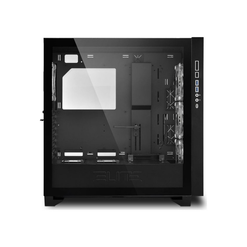 ELITE SHARK CA300H Black pakub suurepäraseid jahutusvõimalusi. Sellel on ruumi kuni üheksale ventilaatorile ning nii eest, pealt kui ka tagant leiab koha vedelikujahuti radiaatoritele. Korpuse esipaneelil asuvad kaks 140 mm RGB-ventilaatorit ja tagapaneelil üks 140 mm ventilaator tagavad suurepärase õhuvoolu, mis hoiab teie komponendid ka kõige intensiivsema koormuse korral jahedana.