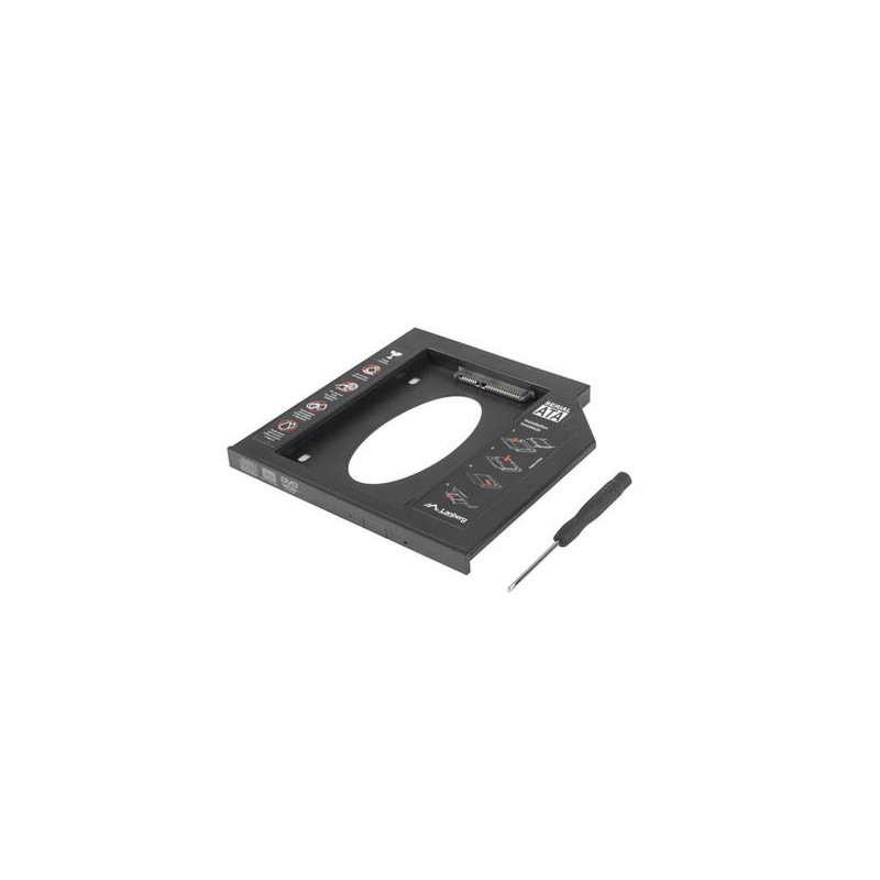 <br />Lanberg IF-SATA-10. Product type: Notebook HDD/SSD caddy, Product colour: Black, Material: Plastic. Quantity per pack: 1 pc(s). Height: 9.5 mm