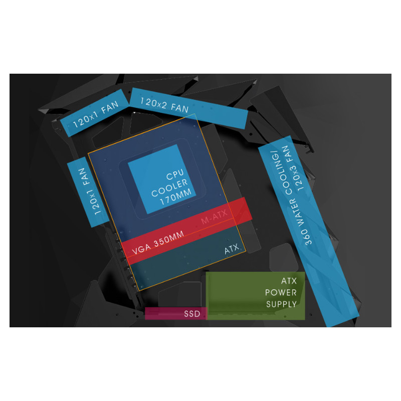 Optimal cooling is the key to proper computer performance - especially during gaming sessions, which consume a lot of hardware resources. The case can accommodate up to 7 (120mm) fans or 4 120mm fans along with 360mm water cooling. In addition, the specially designed design perfectly dissipates heat, taking care of free air flow.