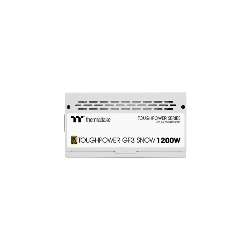 Thermaltake Toughpower GF3 Snow 1200W - TT Premium Edition. Koguvõimsus: 1200 W, Kombineeritud võimsus (+3.3V): 130 W, Kombineeritud võimsus (+12V): 1200 W. Emaplaadi toitepistik: 24-pin ATX, Emaplaadi toitekaabli pikkus: 60 cm, SATA toitekaabli pikkus: 500,650,800,950 mm. Otstarve: PC, Toiteallika (PSU) vormitegur: ATX, 80 Plus sertifikaat: 80 PLUS Gold. Toote värv: Valge, Jahutus: Aktiivne, Ventilaatori läbimõõt: 14 cm. Vastavussertifikaadid: BSMI, CB, CCC, CE, Federal Communications Commission (FCC), madalpingedirektiiv...