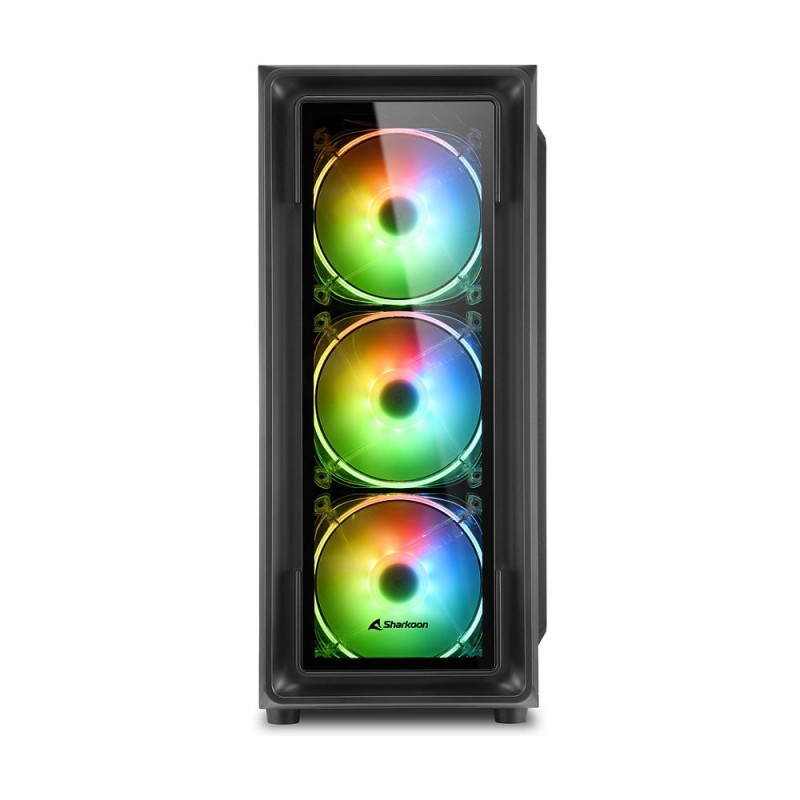 Sharkoon TK4 RGB. Vormifaktor: Midi Tower, Tüüp: PC, Toote värvus: must. Paigaldatud esipaneeli ventilaatorid: 3x 120 mm, toetatud esipaneeli ventilaatorite läbimõõt: 120 mm, paigaldatud tagumine ventilaator: 1x 120 mm. Toetatud kõvaketta suurused: 2,5", 3,5". Laius: 190 mm, sügavus: 400 mm, kõrgus: 456 mm.