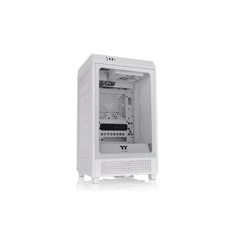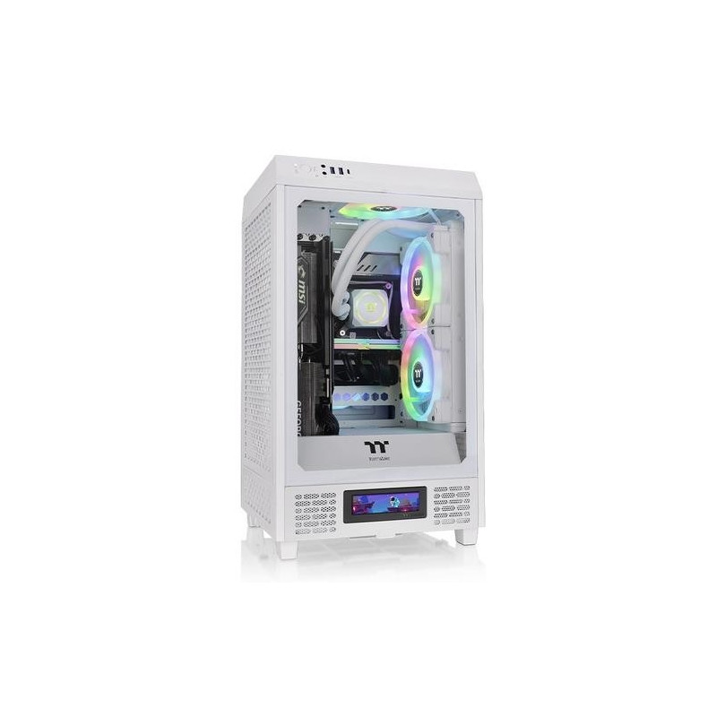 The Tower 200 Snow is a mini-ITX case with a vertical case design that offers fantastic viewing. It comes with two pre-installed CT140 White fans, each 140mm wide, for exceptional thermal efficiency. It also has enough space for a 4090 GPU and a standard-size PSU, fitting all your high-end components. Moreover, The Tower 200 Snow is compatible with a separately sold LCD panel kit with a 3.9" LCD display to maximize the PC's visual effects to its full potential.Thermaltake The Tower 200. Form factor: Mini Tower, Type: PC, Product colour: White. Power supply location: Bottom. Rear fans diameters supported: 120,140 mm, Top fans diameters supported: 120,140 mm, Top radiator sizes supported: 120,140 mm. Supported HDD sizes: 2.5,3.5". Width: 300 mm, Depth: 280 mm, Height: 537 mm