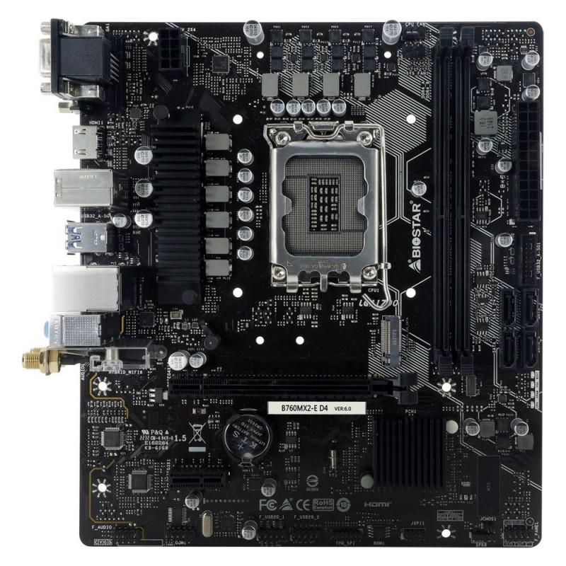 Biostar B760MX2-E D4 on suurepärane valik arvutiehitajatele, kes otsivad usaldusväärset ja taskukohast Micro-ATX emaplaati, mis on varustatud uusimate funktsioonidega. See emaplaat toetab 12. ja 13. põlvkonna Intel Core protsessoreid, pakkudes suurepärase jõudluse nii mängudeks, sisuloomeks kui ka igapäevaseks arvutikasutuseks.