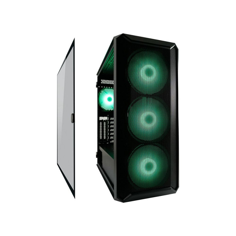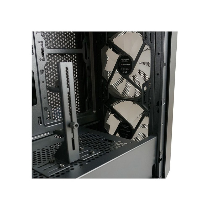 LC-Power Gaming 804B. Vormifaktor: Midi Tower, Tüüp: PC, Toote värvus: must. Ees paigaldatud ventilaatorid: 3x 140 mm, taga paigaldatud ventilaatorid: 1x 120 mm, ülal toetatud ventilaatori läbimõõdud: 120, 140 mm. Toetatud kõvaketta suurused: 2,5", 3,5". Laius: 200 mm, sügavus: 470 mm, kõrgus: 487 mm. Pakendi laius: 270 mm, pakendi sügavus: 540 mm, pakendi kõrgus: 560 mm.
