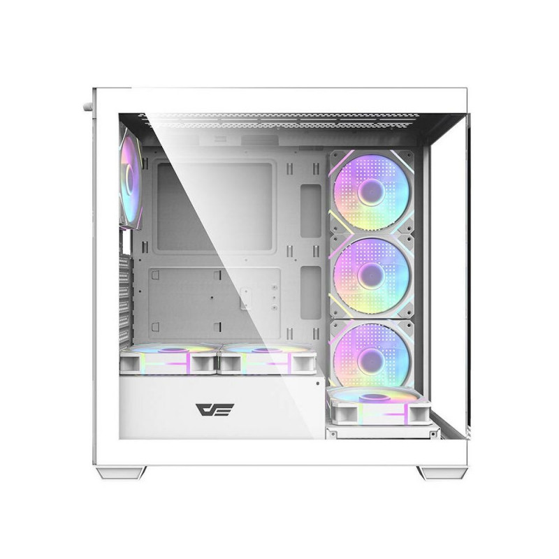 Darkflash DS900 on kaasaegne lahendus nõudlikele kasutajatele, kes hindavad nii esteetikat kui ka funktsionaalsust. Erilise valge disainiga, ilma A-piilarita panoraamdisainiga karp, millel on topelt täiesti läbipaistvad klaasseinad, mitte ainult ei näe silmatorkav välja, vaid pakub ka suurepärast komponentide nähtavust. Karp on loodud pakkuma optimaalset jahutust, jõudlust ja mitmekülgsust, pakkudes samal ajal lihtsat muutmist ja arvutisüsteemide laiendamist. Komplektis on 7 ARGB 120 mm ventilaatorit.