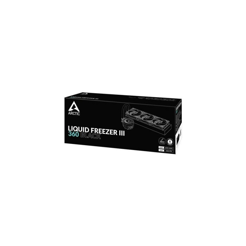 Outstanding cooling performance through liquid cooling. ARCTIC's Premium Liquid Freezer range offers impressively high performance at moderate prices without the complexity of conventional CPU water coolers. Completely maintenance-free, the all-in-one cooler with various models for smaller and larger cases covers all the most important current CPU sockets.ARCTIC Liquid Freezer III 360 - Multi Compatible All-in-One CPU Water Cooler. Type: All-in-one liquid cooler, Fan diameter: 12 cm, Airflow: 95.65 m³/h, Bearing type: Fluid Dynamic Bearing (FDB). Product colour: Black