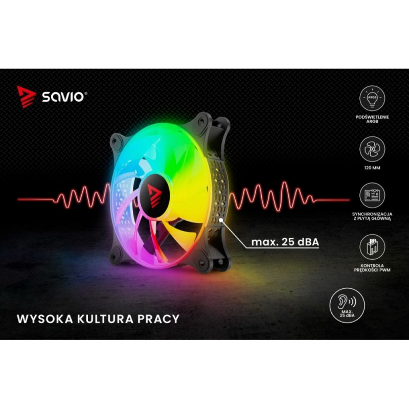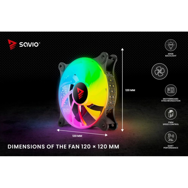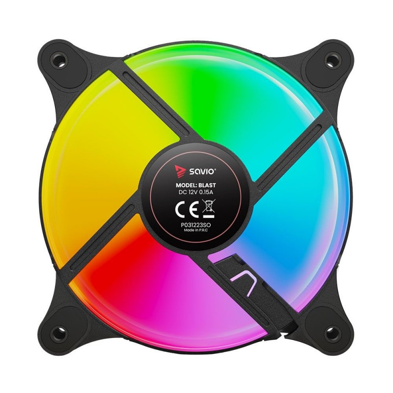 Taustvalgustuse juhtimineSavio BLAST ventilaatori taustvalgustust juhitakse 3-pin 5V ARGB ühenduse kaudu. Kui ventilaator on ühendatud vastava pesaga emaplaadile, on võimalik adresseerida iga LED-i eraldi, et saavutada keerukamaid valgusefekte. Ventilaatoril on integreeritud adapter, mis võimaldab mitut ventilaatorit järjestikku ühendada juhuks, kui emaplaadil pole piisavalt ühenduskohti.