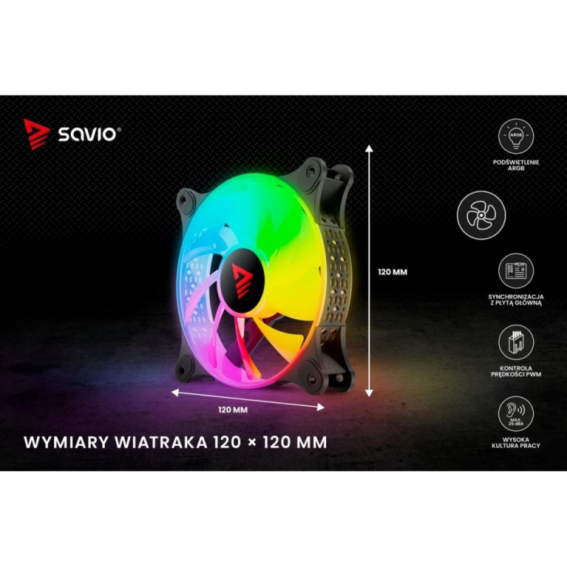 Savio BLAST ventilaatoril on standardne 120 mm suurus ja maksimaalne pöörlemiskiirus kuni 1800 p/min. See tagab sinu arvuti väga tõhusa jahutuse. Ventilaatori ainulaadne raamidisain loob korpuse sees muljetavaldavad valgusefektid.