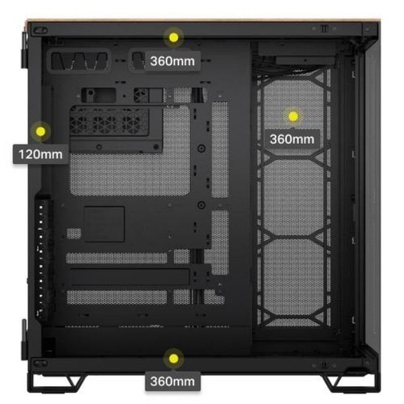 This CORSAIR 6500X Mid-Tower Dual Chamber PC Case comes pre-fitted with Elite case panels to start your build in style, complete with fully mesh paneling for exceptional airflow and a dual chamber design for an organized, stunning build.<br><br><b>CHOOSE YOUR ADVENTURE</b><br>Your unique new build starts with pre-fitted Elite panels in a style that reflects who you are. Choose from a white or black case complemented by a variety of sleek aluminum or elegant wooden panels.<br><br><b>DUAL CHAMBER DESIGN</b><br>Show off your cleanest, most organized build in one chamber equipped with a multitude of fan and radiator mounts, while hiding cable routing, storage drives, and your PSU in the second chamber.<br><br><b>A FLAWLESS VIEW</b><br>Take advantage of reverse connector motherboard compatibility (ASUS BTF, MSI PROJECT ZERO) and iCUE LINK and win the war on cables once and for all.<br><br><b>ZERO COMPROMISE AIRFLOW</b><br>The 6500X doesn't just look cool. Fan and radiator mounts all around ensure enough airflow for any flagship build.<br><br><b>YOUR CASE, YOUR STYLE</b><br>Any system will look good in the 6500 Series, but if you're looking for inspiration, check out some of our favorites.<br><br><b>WIDE COOLING FLEXIBILITY</b><br>Customize your cooling setup with room for up to 10x 120mm or 7x 140mm fans, including versatile radiator mounting options for up to 360mm in the front, roof, bottom, and side.<br><br><b>MODERN FRONT PANEL I/O</b><br>Puts your connections within easy reach, including a USB 3.2 Gen 2 Type-C Port, 4x USB 3.2 Gen 1 Type-A ports, and a combination audio/microphone jack.Corsair CC-9011282-WW. Form factor: Midi Tower, Type: PC, Product colour: Black, Walnut. Supported power supply form factors: ATX. Side fans diameters supported: 120 mm, Rear fans diameters supported: 120,140 mm, Top fans diameters supported: 120,140 mm. Supported HDD sizes: 3.5", SSD form factor: 2.5". Width: 328 mm, Depth: 481 mm, Height: 496 mm