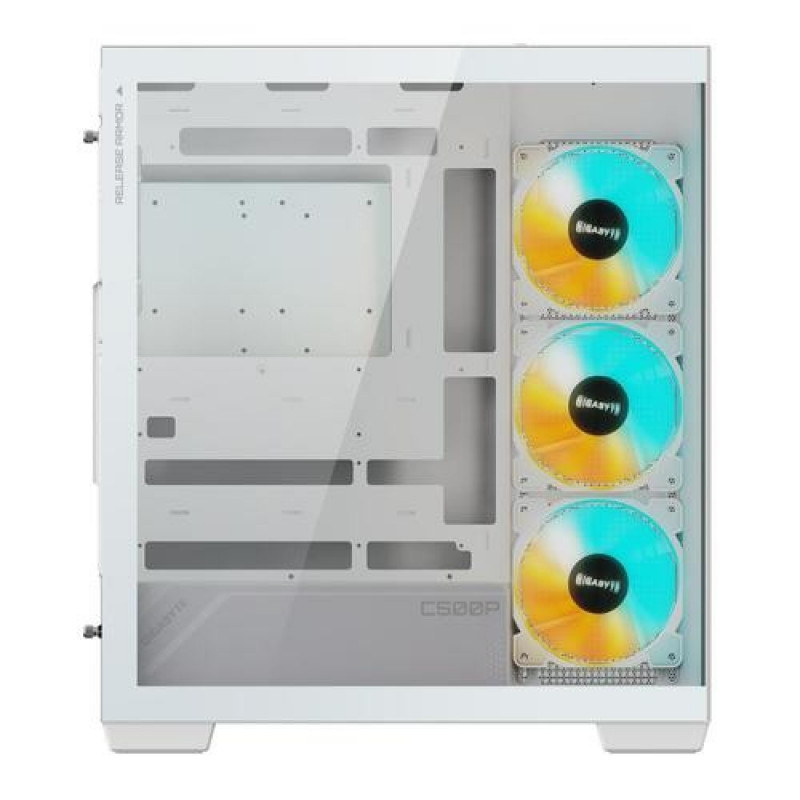 <b>270° Panoramic View with Tempered Glass Panels</b><br>Both front and side panels are made of 4mm tempered glass, offering a 270° panoramic view of the internal assembly. This allows users to easily showcase their customized PC rig. The no-drill design of the both glass panels reduces the risk of damage and enhances the overall visual appeal.<br><br><b>OPTIMIZED AIRFLOW DESIGN</b><br>The top, bottom and partial right-side panels feature a large-area vented design, effectively delivering generous airflow for optimized cooling. This not only enhances air intake but also helps to protect hardware components and maintain performance stability.<br><br><b>RGB FUSION</b><br>With 16.7M customizable color options and numerous lighting effects, you can choose lighting effects or synchronize with other devices.<br><br><b>ARGB CONNECTOR HUB</b><br>The built-in ARGB connector hub is equipped with five 5V 3-pin connectors, enabling users to expand their RGB light stripes, create a superb cooling system as well as a fantastic and gorgeous rig.<br><br><b>TOOL-FREE INSTALLATION</b><br>Thanks to its modular design, users can easily remove the front and side panels without any tool when updating or changing the device.<br><br><b>DETACHABLE DUST FILTER</b><br>The filters keep your PC from accumulating dust while maintaining optimal cooling performance. The magnetic filters on the top, right-side and bottom panels make maintenance easy.GIGABYTE C500 PANORAMIC STEALTH. Form factor: Midi Tower, Type: PC, Product colour: White. Power supply location: Bottom, Supported power supply form factors: ATX. Front fans diameters supported: 120,140 mm, Side fans installed: 3x 120 mm, Side fans diameters supported: 120 mm. Supported HDD sizes: 2.5,3.5", SSD form factor: 2.5". Width: 235 mm, Depth: 430 mm, Height: 501 mm