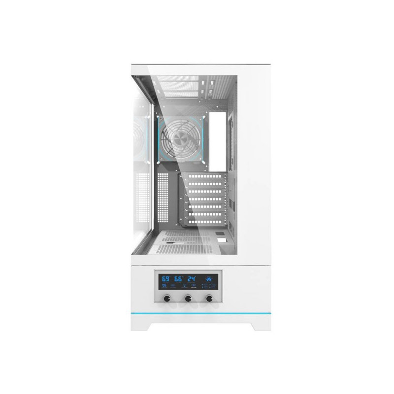 Temperatuurikontrolli süsteemKorpus on varustatud digitaalse termohaldussüsteemiga, mis võimaldab reaalajas jälgida protsessori, graafikakaardi ja sisemuse temperatuure. Ventilaatorite kiirust saab reguleerida esipaneelil asuvate mugavate nuppude abil, võimaldades jahutust täpselt kohandada vastavalt hetkevajadustele ja koormusele. Märkus: ekraani täielikuks toimimiseks on vajalik draiveri allalaadimine tootja veebisaidilt.