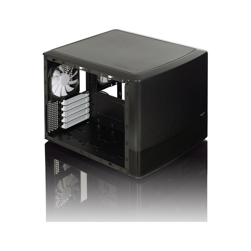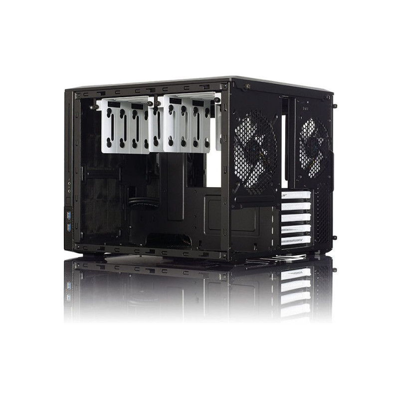 Fractal Design Node 804. Vormifaktor: Kuup, Tüüp: PC, Toote värvus: Must. Toiteallika paigutus: Põhi. Paigaldatud esiventilaatorid: 1x 120 mm, toetatud esiventilaatorite läbimõõt: 120 mm, paigaldatud tagaventilaatorid: 2x 120 mm. Toetatud kõvaketta suurused: 2,5", 3,5". Laius: 344 mm, sügavus: 389 mm, kõrgus: 307 mm.