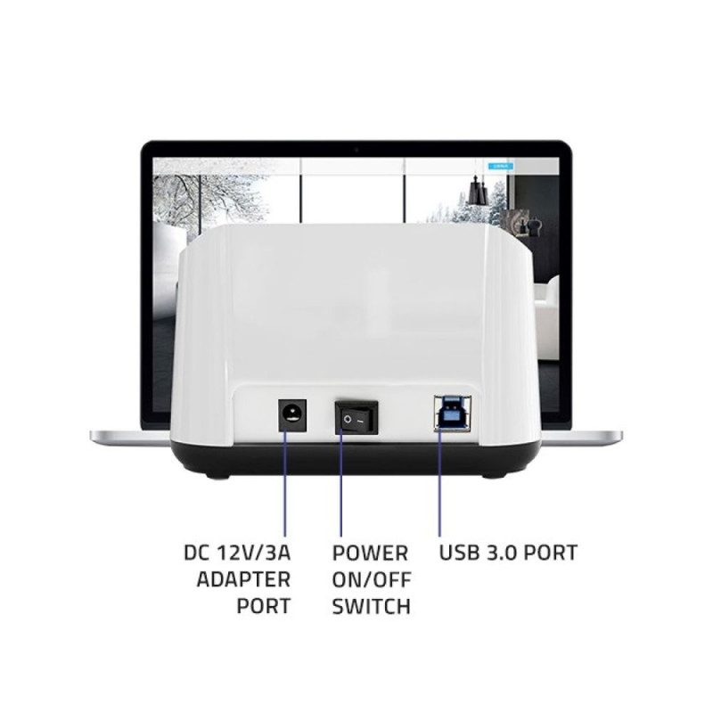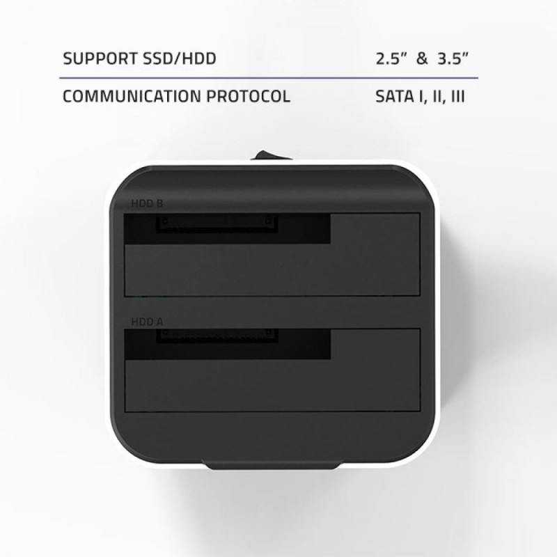 Qoltec 50309 HDD SSD 2.5" 3.5" dokkimisjaam | SATA III | USB 3.0 | ülikiire 5Gb/s | kloonimisfunktsi