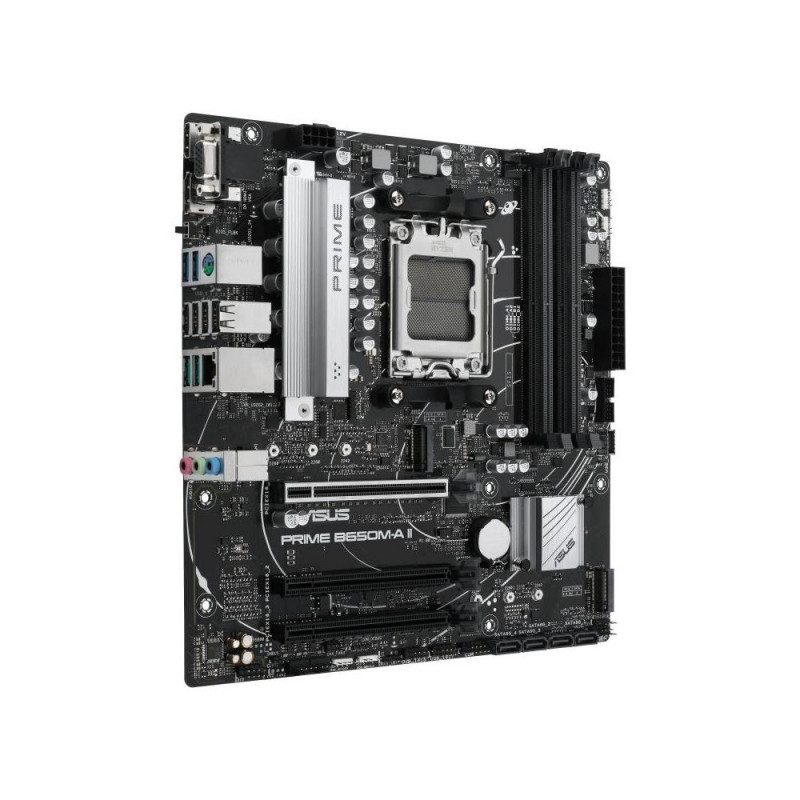| Summary | ASUS PRIME B650M-A II-CSM. Processor manufacturer: AMD, Processor socket: Socket AM5, Compatible processor series: AMD Ryzen 7000 Series. Supported memory types: DDR5-SDRAM, Maximum internal memory: 128 GB, Memory slots type: DIMM. Supported storage drive |