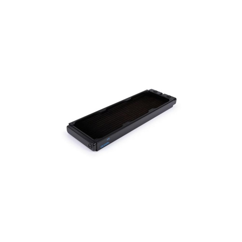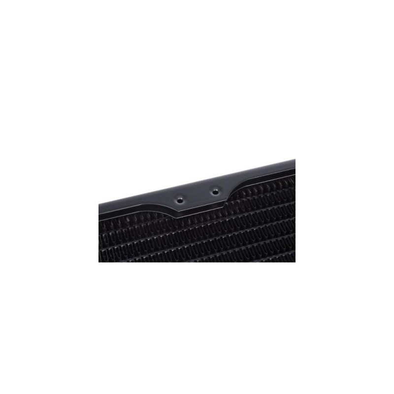 For more than a decade, Alphacool has dominated the market with the NexXxoS Full Copper radiator series. Our extensive portfolio of radiator variants is unique in the world. Just like our manufacturing process, which allows us to produce all water-carrying parts and the cooling fins out of pure copper. As a result, the NexXxoS series offers the highest thermal conductivity of any radiator on the market. Thanks to their exceptional performance, the radiators can easily dissipate even extremely high waste heat and have become essential in many areas of the cooling industry.<br><br><b>The next step in evolution: NexXxoS HPE Full Copper Radiator!</b><br>The NexXxos Full Copper HPE Radiator uses the same materials as previous NexXxos models, but takes it a step further technically. Due to the condensed internal structure, the number of water channels and copper fins could be increased. Thus, a larger volume of water is in direct contact with the cooling fins and the heat transfer is enormously improved. The higher number of fin rows and their shortening also makes much more efficient use of the cooling surface. Comparison tests* with the conventional NexXxos radiator have shown that a performance increase of 4.5K is possible when using the HPE radiator. At higher ambient temperatures and higher fan speeds, the performance gap with the normal NexXxoS radiators even increases progressively, reaching a possible performance increase of up to 6K.<br><br>(* Test setup: NexXxos ST30 360mm radiator vs. NexXxos HPE-30 360mm radiator with Eisbaer cooler and 3x 120mm Rise Aurora fans and on Asus Prime x299 motherboard with Intel i9 10900x CPU with 350W waste heat)<br><br><b>Connection options & mounting</b><br>The NexXxoS HPE radiator has two IN or OUT connections with G1/4" threads in the pre-chamber area. On the opposite side is a fill or drain port, which can be used for filling and draining the water circuit. All screws for mounting in the case and for mounting the fans are included with the radiator. Additional screws are not usually required.<br><br><b>Safety first</b><br>The NexXxoS HPE radiator has special protective plates placed under all mounting holes to prevent the screws from being screwed in too deeply. This protects the cooling fins and water channels underneath from damage.<br><br><b>Patented screw plugs</b><br>All NexXxoS HPE radiators use Alphacool's patented screw plugs. Protruding screw plugs often mean that the radiator cannot be laid flush. Alphacool's screw plugs are fully recessed into the radiator, flush with its surface and allow easy installation in the case.Alphacool 14377. Type: Radiatior, Material: Brass, Copper, Steel, Product colour: Black. Width: 124 mm, Depth: 391.5 mm, Height: 30 mm