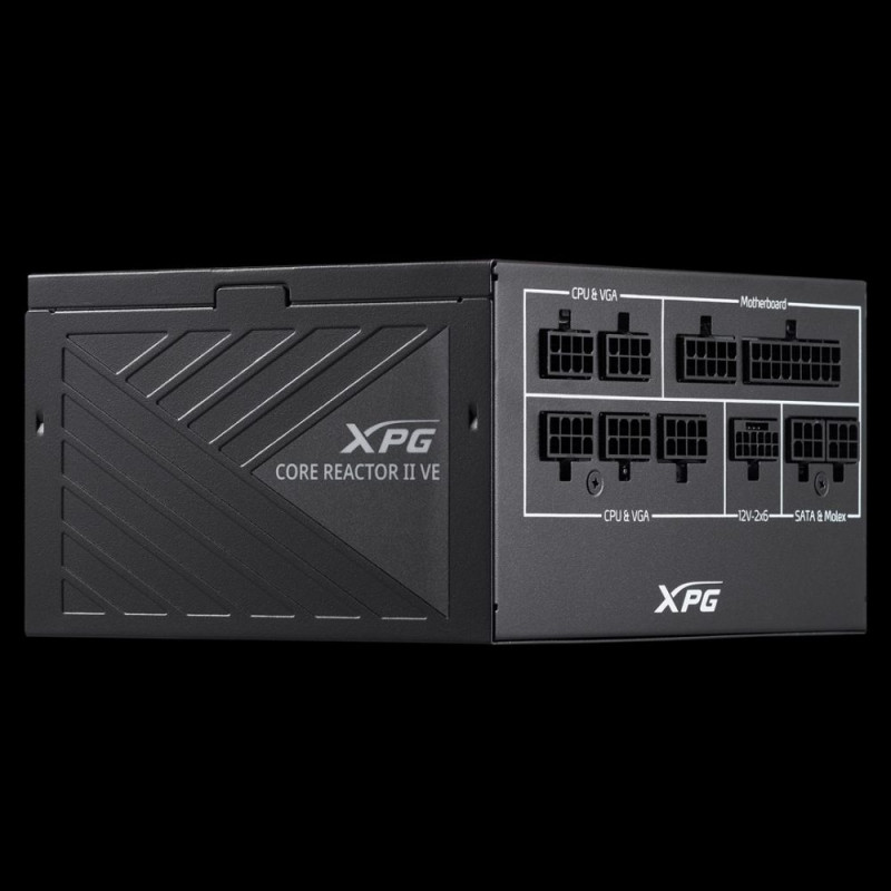 XPG COREREACTOR II VE 750W toiteplokk on täielikult modulaarse disainiga, omab 80 PLUS Gold sertifikaati ning maksimaalset väljundvõimsust 750 W. Komplektis on mitmed ühendused, sealhulgas 6 SATA toitepistikut ja 3 PCI Express toitepistikut. Aktiivne jahutus toimub 12 cm ventilaatoriga.