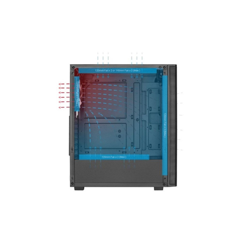 | Ülemiste ventilaatorite toetatud diameetrid | 120, 140 mm |
