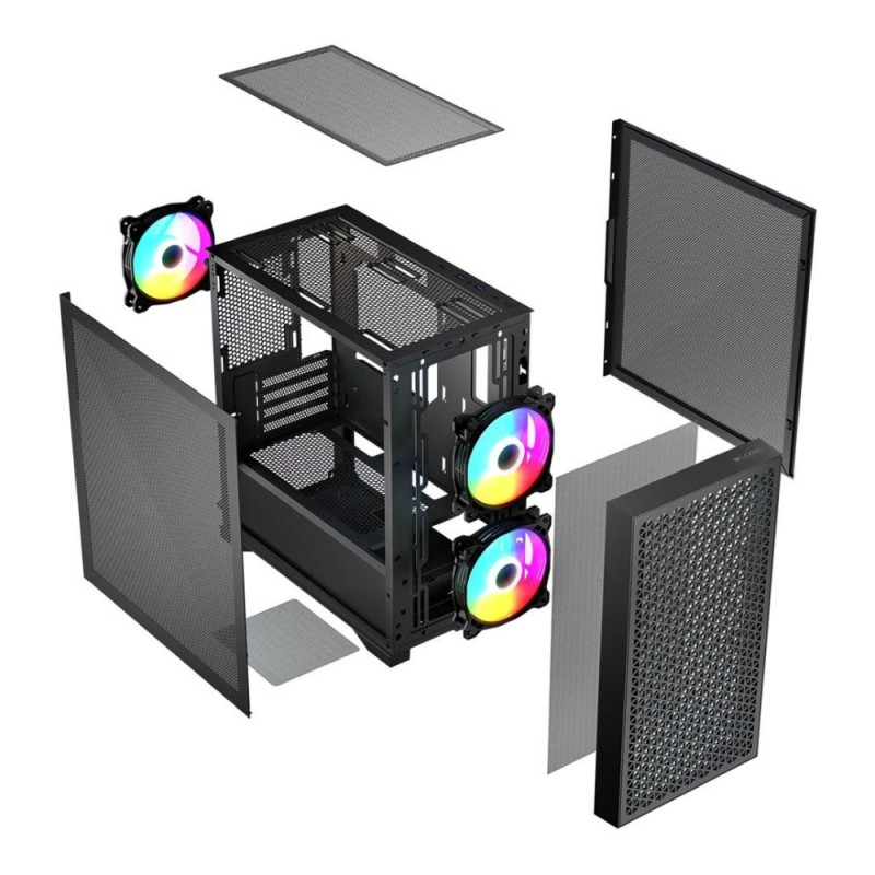 Must Mini Tower tüüpi arvutikorpus, mis toetab micro ATX emaplaate. Omaduste hulka kuuluvad 1x 3.5" pesa, 1x 2.5" pesa, 2x USB 3.0 porti ning jahutustugi kuni kahele esiventilaatorile ja ühele tagaventilaatorile.