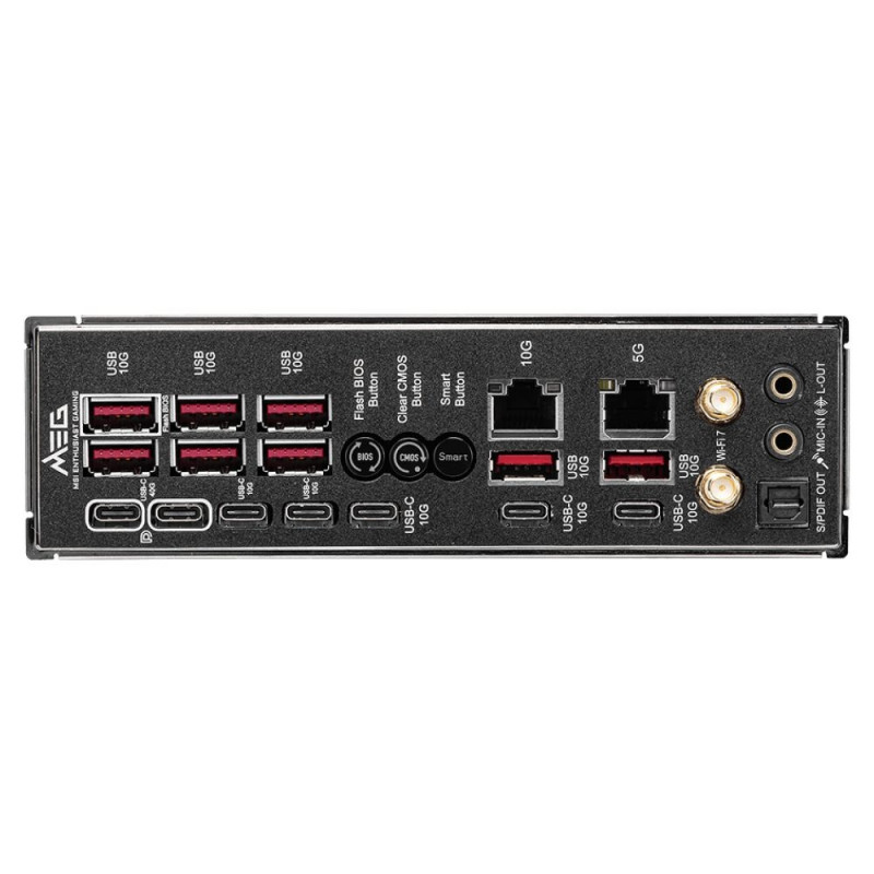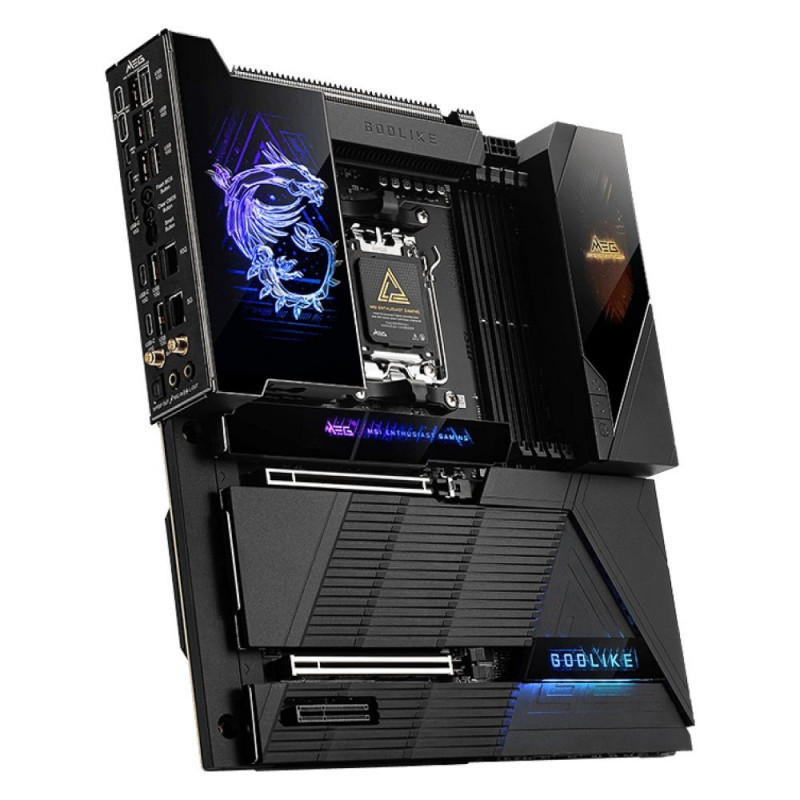 MSI MEG X870E GODLIKE. Protsessori tootja: AMD, Protsessori pesa: Sockel AM5, Ühilduvad protsessorid: AMD Ryzen 7000 Series, AMD Ryzen 8000 Series, AMD Ryzen 9000 Series. Toetatud operatiivmälu: DDR5-SDRAM, Maksimaalne operatiivmälu: 256 GB, Operatiivmälu tüüp: DIMM. Toetatud salvestusseadme liidesed: M.2, SATA III, Toetatud salvestusseadmed: HDD & SSD, RAID-tasemed: 0, 1, 10. Ethernet-liidese tüüp: 5 Gigabit Ethernet, Parim Wi-Fi standard: Wi-Fi 7 (802.11be), Wi-Fi standardid: 802.11a, 802.11b, 802.11g, Wi-Fi 4 (802.11n), Wi-Fi 5 (802.11ac), Wi-Fi 6 (802.11ax), Wi-Fi 6E.... Komponent: PC, Emaplaadi vormitegur: Erweitertes ATX, Emaplaadi kiibistiku perekond: AMD