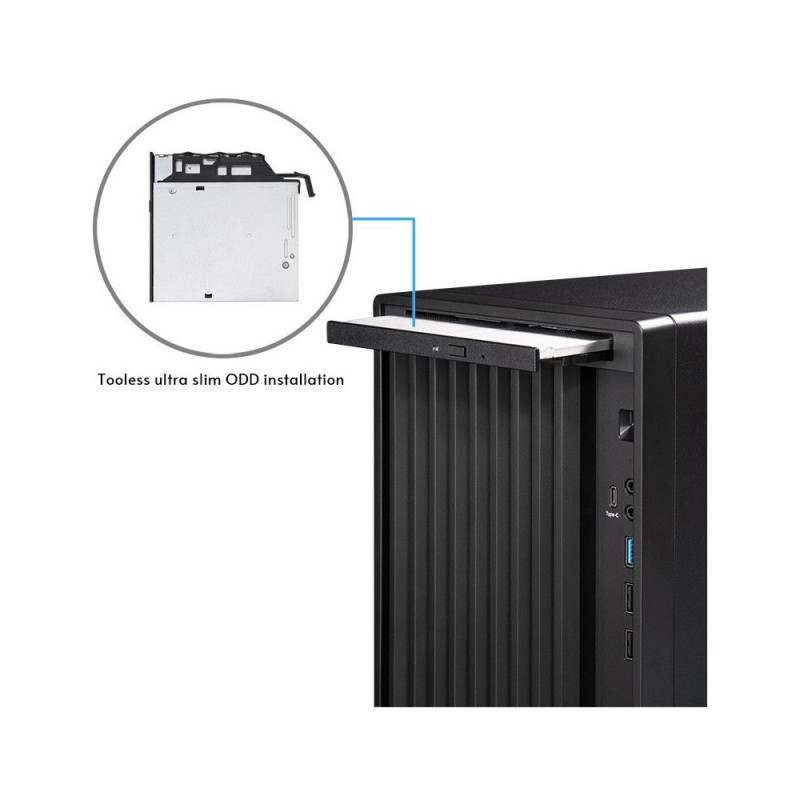 Chieftec BS-20B-OP on valmistatud vastupidavast terasest, mis tagab korpuse pika eluea ja stabiilsuse. Korpuse minimalistlik ja elegantne välimus sobib igasse interjööri ning selle must viimistlus annab sellele professionaalse ja ajatu ilme. Esipaneelil asuvad mugavalt ligipääsetavad USB-pesad ja helisisendid, mis muudavad igapäevase kasutamise lihtsaks ja mugavaks.