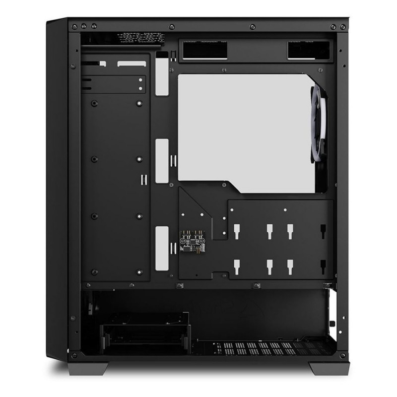 Sharkoon VS8 RGB. Vormifaktor: Midi Tower, Tüüp: PC, Toote värvus: must. Ees toetatud ventilaatorite läbimõõt: 120 mm, Tagaküljel paigaldatud ventilaatorid: 1x 120 mm, Tagaküljel toetatud ventilaatorite läbimõõt: 120 mm. Toetatud kõvaketta suurused: 2,5", 3,5". Laius: 205 mm, Sügavus: 423 mm, Kõrgus: 485 mm.