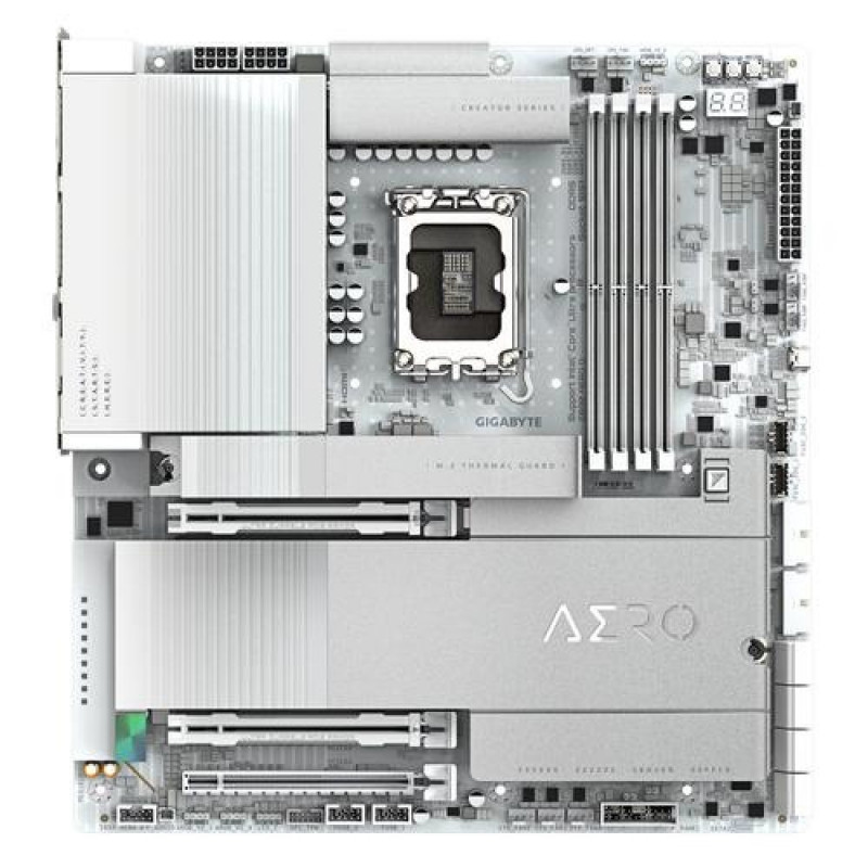 Elevate your computing experience with GIGABYTE's renowned motherboard series: AORUS, AERO, and GIGABYTE. Featuring innovative designs and advanced features, these boards offer exceptional performance and reliability. Whether you're a gamer, content creator, or professional, our series cater to your needs, ensuring uncompromising quality and cutting-edgeGIGABYTE Z890 AERO D Motherboard - Supports Intel Core Ultra (Series 2) CPUs, 16+1+2 phases VRM, up to 9500MHz DDR5 (OC), PCIe 5.0 M.2, Wi-Fi 7, Thunderbolt 5. Processor manufacturer: Intel, Processor socket: LGA 1851 (Socket V1), Compatible processor series: Intel Core Ultra (Series 2). Supported memory types: DDR5-SDRAM, Maximum internal memory: 256 GB, Memory slots type: DIMM. Supported storage drive interfaces: M.2, SATA III, Supported storage drive types: HDD & SSD, RAID levels: 0, 1, 5, 10. Ethernet interface type: 10 Gigabit Ethernet, LAN controller: Marvell AQtion AQC113C, Top Wi-Fi standard: Wi-Fi 7 (802.11be). Component for: PC, Motherboard form factor: Extended ATX, Motherboard chipset family: Intel