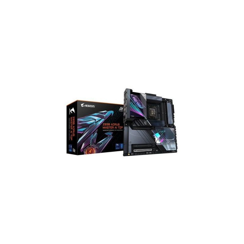 Elevate your computing experience with GIGABYTE's renowned motherboard series: AORUS, AERO, and GIGABYTE. Featuring innovative designs and advanced features, these boards offer exceptional performance and reliability. Whether you're a gamer, content creator, or professional, our series cater to your needs, ensuring uncompromising quality and cutting-edgeGIGABYTE Z890 AORUS MASTER AI TOP Motherboard - Supports Intel Core Ultra (Series 2) CPUs, 20+1+2 phases VRM, up to 9500MHz DDR5 (OC), PCIe 5.0 M.2, Wi-Fi 7, Thunderbolt 4. Processor manufacturer: Intel, Processor socket: LGA 1851 (Socket V1), Compatible processor series: Intel Core Ultra (Series 2). Supported memory types: DDR5-SDRAM, Maximum internal memory: 256 GB, Memory slots type: DIMM. Supported storage drive interfaces: M.2, SATA III, Supported storage drive types: HDD & SSD, RAID levels: 0, 1, 5, 10. Maximum resolution: 5120 x 2880 pixels. Ethernet interface type: 10 Gigabit Ethernet, LAN controller: Marvell AQtion AQC113C, Top Wi-Fi standard: Wi-Fi 7 (802.11be)