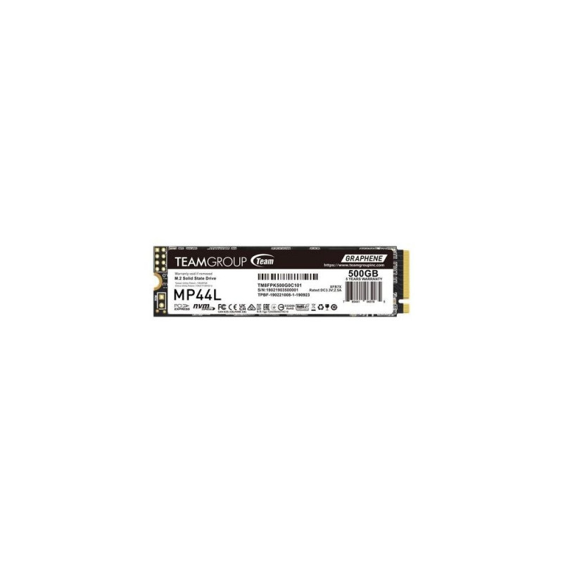 <b>Heat dissipating graphene SSD label</b><br>MP44L M.2 PCIe SSD is the first product to introduce conductive graphene coating on aluminum foil to the SSD label. Less than 1mm thick, the new label design eradicates mechanical interference when assembling. Moreover, together with the onboard M.2 heat sink, the heat dissipating performance is doubled!<br><br><b>Supporting SLC Cache enhancing work efficiency drastically</b><br>MP44L M.2 PCIe SSD adopts the PCIe Gen4x4 interface and supports SLC Cache. It delivers read/write speeds of up to 5,000/4,500MB/s . Compared with the PCIe Gen3 interface, the performance is more than doubled,and drastically enhances work efficiency.<br><br><b>Diversified optimization technology for stability, durability, and better reliability</b><br>It supports Windows TRIM optimization option and Low Density Parity Check Code (LDPC) , reducing wearing on SSD during high-speed read/write duties. It also features precise error correction capability, enabling MP44L M.2 PCIe SSD to operate at high speed with stability, durability, and reliability.<br><br><b>Supporting the latest NVMe standards</b><br>MP44L M.2 PCIe SSD supports the latest NVMe standards. Through NVM Sets, predictable latency mode (PLM), and the latest read recovery level (RRL) technology, wearing and latency on SSDs is reduced, expanding lifespan effectively.<br><br><b>S.M.A.R.T. monitoring software</b><br>The S.M.A.R.T. monitoring software exclusively developed by TEAMGROUP monitors product status at all times. Through fast and easy setting and inspection, it monitors product quality and performance.<br><br><b>Trustworthy and reliable five-year warranty</b><br>MP44L M.2 PCIe SSD has been through rigorous testing and quality control procedures. It comes with a five-year warranty to ensure users of product quality.Team Group MP44L TM8FPK500G0C101. SSD capacity: 500 GB, SSD form factor: M.2, Read speed: 5000 MB/s, Write speed: 3700 MB/s, Component for: PC/Laptop