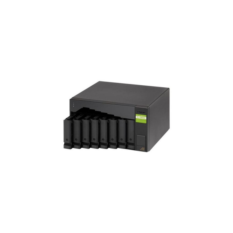 <b>High-speed USB transfer</b><br><br>The TL-D800C features high-speed USB 3.2 Gen2 Type-C connectivity and built-in USB Attached SCSI Protocol (UASP) to provide convenient fast file sharing and intensive data transfer. The TL-D800C not only provides you higher file transfer performance than USB 3.2 Gen1 (USB 3.2 Gen 1) but offers a more cost-effective option than other storage enclosures on the market.<br><br><b>Flexible storage configuration and management</b><br><br>The TL-D800C provides software-controlled configurations for greater management flexibility. Users can use the QTS / QuTS hero Storage & Snapshots Manager to configure the TL-D800C as a storage enclosure for your QNAP NAS. The NAS expansion storage mode supports various NAS functions, including storage pools and snapshots. With TL-D800C, you can easily expand storage capacity.<br><br><b>JBOD migration speeds up remote file transfers</b><br><br>Migrating a large number of small files or a single large data file by network environment can be time-consuming and consume significant network bandwidth that causes decreased work efficiency. The TL-D800C supports remote file transfer. All you have to do is set up the RAID configuration and store a large number of files. Then you can move the TL-D800C to another place and connect it with the NAS to experience the device’s simple plug and play feature and fast data migration.<br><br><b>Use TL-D800C as a high-capacity disk drive reader by setting up single disk mode</b><br><br>You can treat each disk in your TL-D800C as an individual storage space, and also use it as a removable drive. It can function like a high-capacity disk drive reader. When one of disk reaches data storage limitation, you can remove it and put it into a dry box. Then swap a different disk into theTL-D800C empty drive slot. After that, you can install the disk that reached full data capacity into the TL-D800C and connect it with a NAS for direct file access.<br><br><b>Versatile usage scenarios to meet storage expansion needs</b><br><br>The TL-D800C meets many storage expansion requirements for the home and office.<br><br><b>Scenario 1: Expand your NAS capacity</b><br><br>The TL-D800C provides an alternative method for users to expand their NAS storage capacity. By connecting the TL-D800C to their NAS and using the Storage & Snapshots Manager in QTS or QTS hero, users can easily configure and manage their storage expansion. The TL-D800C supports a variety of QNAP NAS storage and file management functions, allowing users to build storage pools, finding files with Qsirch, and organizing files with Qfiling.<br><br><b>Scenario 2: External storage for your NAS</b><br><br>You can use the TL-D800C to expand your NAS storage. You can select disks to create storage pools for expanding your NAS capacity, or you can treat each disk as an individual external storage space and use it as a removable drive for greater flexibility. Regardless of the mode you use, you can always use Storage & Snapshots Manager in QTS or QTS hero to set up and manage your TL-D800C and use hard drive S.M.A.R.T. and Notification Center to check disk status anytime and anywhere.QNAP TL-D800C. Product type: HDD/SSD enclosure. Number of storage drives supported: 8, Storage drive size: 2.5/3.5", Supported storage drive interfaces: Serial ATA II, Serial ATA III. Data transfer rate: 6 Gbit/s. Hot-swap. Product colour: Black, Grey. USB connector type: USB Type-C