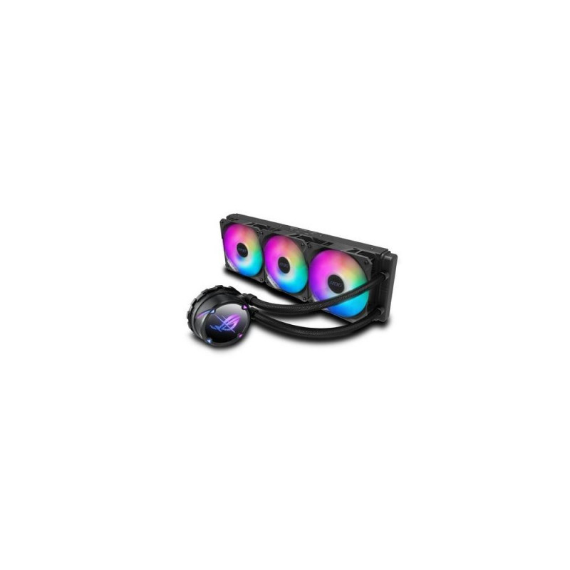 ROG Strix LC II 360 ARGB AIO delivers high-performance CPU liquid cooling with sleek, modern aesthetics. Featuring a closed-loop design and ARGB radiator fans, the cooler unleashes the full potential of an Intel® or AMD CPU while further accentuating your build with brilliant multi-color lighting effects. With the cooling you expect from ROG, Strix LC II 360 ARGB is ready to become an essential part of your rig and light it up with your own unique style.<br><br><b>NEXT-LEVEL CUSTOMIZATION<br>Emanate Your Style</b><br>Intricate new designs on ROG Strix LC II 360 ARGB showcase the iconic ROG aesthetic, and every detail shines with the spirit of Strix. Aura Sync support on the pump cover’s new illuminated ROG logo and ARGB radiator fans allows you to coordinate lighting effects with ROG build components — and show off your personal style. Also, engraved ROG lettering on the radiator’s side complements the iridescent lettering on the hubs of each fan.<br><br><b>Optimized Fan Design</b><br>The ROG radiator fans are specifically tuned to deliver optimum performance on ROG Strix LC II series radiators. The fans generate 81 CFM / 5.0 mmH2O for exceptional cooling efficiency.<br><br><b>Enhanced Pump Design</b><br>ROG Strix LC II series is equipped with the latest cooling-plate design. Machined from pure copper, the plate features an array of fine micro-channels that reduce thermal resistance and increase surface area, resulting in lower CPU temperatures.<br><br><b>PWM-Controlled Pump and Fans</b><br>PWM control enables both the pump and radiator fans to spin at slower speeds when the CPU is idling or under light load, helping to keep noise levels to a minimum.<br><br><b>COMPREHENSIVE COMPATIBILITY</b><br>ROG Strix LC II series is compatible with a wide range of Intel® and AMD motherboard platforms, giving you the flexibility to pair it with your choice of processor. With 380mm of tubing at your disposal, radiator installation is equally as flexible in a variety of chassis.ASUS ROG STRIX LC II 360 ARGB. Type: All-in-one liquid cooler, Fan diameter: 12 cm, Maximum airflow: 80.95 cfm, Airflow: 137.5 m³/h. Product colour: Black