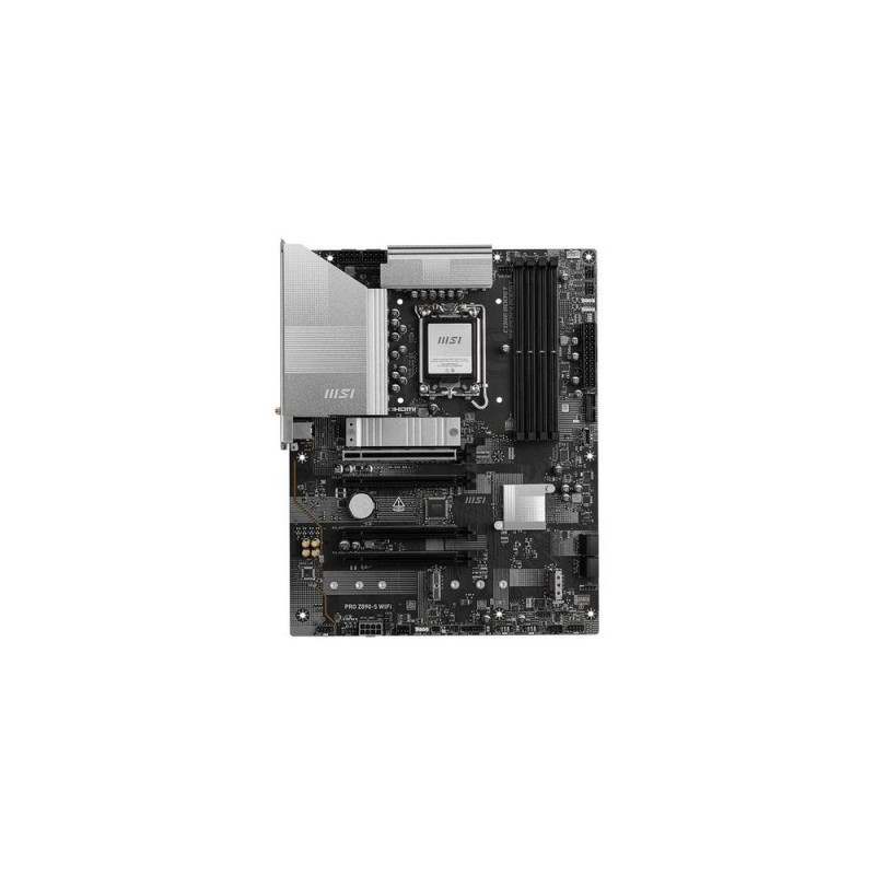 <b>PRO Z890-S WIFI</b><br>PRO Z890-S WIFI offers a simple design with a harmonious silver color scheme that perfectly matches both white and black PC builds. It is engineered with many exclusive features of MSI, a true Wi-Fi 7 with EZ Antenna, 2.5G LAN, Thunderbolt 4, PCIe 5.0 M.2, and Supplemental PCIe Power, ready for the Intel® Core™ Ultra processors.<br><br><b>BUSINESS ELEGANCE</b><br>The PRO Series is tailored to professionals from all walks of life. The lineup features impressive performance and high quality, while aiming to provide users incredible experience. Users who care about productivity and efficiency can definitely count on the MSI PRO Series to assist you with multitasking and increasing efficiency.<br><br>MSI motherboards are designed with advanced hardware and technology, well-supporting the demanding computing usage of gaming and AI. Moreover, we also introduce AI to MSI Center and BIOS, making everything more effortless than before.<br><br><b>One Finger for EZ GPU Installation</b><br>The new EZ PCIe Clip II, located on the first slot, features the rebounding force mechanism that allows for easy removal of the graphics card by pressing the tail-like lock with one finger. Due to this exquisite design, users can uninstall the graphics cards effortlessly, even in the cramped case spaces.<br><br><b>12+1+1+1 DRPS POWER DESIGN</b><br>Unleash and sustain the maximum performance with a flagship VRM design built with a total of 12+1+1+1 digital power phases. With dual power connectors, PRO Z890-S WIFI is ready for the challenge of high-end processors.<br><br><b>HIGH-BANDWIDTH AND LOW-LATENCY NETWORK</b><br>MSI's premium network solution provides incredible data transfer speed for demanding users.MSI PRO Z890-S WIFI. Processor manufacturer: Intel, Processor socket: LGA 1851 (Socket V1), Compatible processor series: Intel Core Ultra (Series 2). Supported memory types: DDR5-SDRAM, Maximum internal memory: 256 GB, Memory slots type: DIMM. Supported storage drive interfaces: M.2, SATA III, Supported storage drive types: HDD & SSD, RAID levels: 0, 1, 5, 10. Ethernet interface type: 2.5 Gigabit Ethernet, Top Wi-Fi standard: Wi-Fi 7 (802.11be), Wi-Fi standards: 802.11a, 802.11b, 802.11g, Wi-Fi 4 (802.11n), Wi-Fi 5 (802.11ac), Wi-Fi 6 (802.11ax), Wi-Fi 6E.... Component for: PC, Motherboard form factor: ATX, Motherboard chipset family: Intel