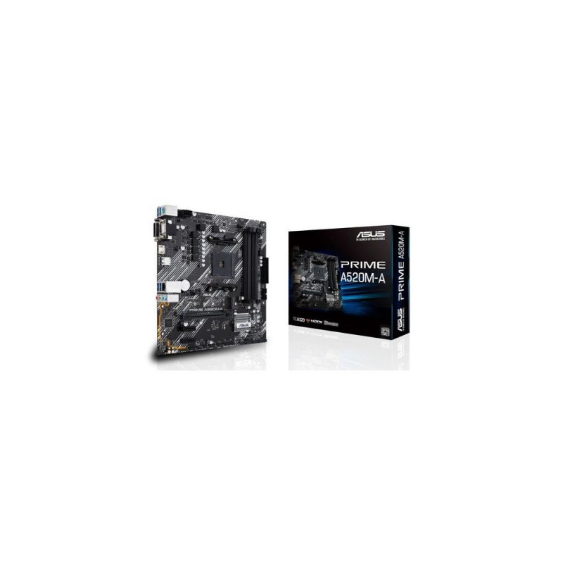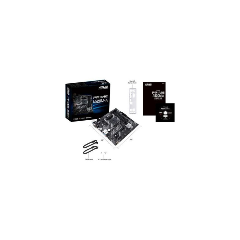 <b>AMD A520 (Ryzen AM4) micro ATX motherboard with M.2, DP, HDMI,D-Sub, SATA 6 Gbps, USB 3.2 Gen 1 ports, and Aura Sync RGB lighting support</b><br><br><b>Prime</b><br>ASUS Prime series is expertly engineered to unleash the full potential of AMD Ryzen platform. Boasting a robust power design, comprehensive cooling solutions and intelligent tuning options, Prime A520 series motherboards provide daily users and DIY PC builders a range of performance tuning options via intuitive software and firmware features.<br><br><b>ASUS Corporate Stable Model</b><br>ASUS Corporate Stable Model (CSM) is a commercial program designed to provide stable and reliable motherboards. Offering up to 36-month product lifecycle support and 6-month end-of-life notice to allow sufficient lead times for your organization to get ready for product transitions. Each purchase of an ASUS CSM motherboard comes with ASUS Control Center Express - server-grade IT management software.<br><br>Learn more about ASUS Corporate Stable Model ><br>* Lifecycle support for consumer chipsets (eg. Q370, H370, B360,H270,B250) is set at 15 months. Program offerings may vary by region. Please consult your local sales representative for more information.<br><br><b>ASUS Control Center Express</b><br>ASUS Control Center Express is an integrated IT monitoring and management software designed to deploy faster, simplify IT operations and improve productivity with comprehensive control and user-friendly functions. ASUS Control Center Express is compatible with over 100 ASUS motherboards to provide a high-quality, TCO-optimized solution for your business needs.<br><br><b>Optimize IT endpoint management</b><br>Designed to assist IT staff in monitoring and controlling devices within their corporate networks, and facilitate inventory checking in multiple locations remotely<br><br><b>Automate IT maintenance</b><br>Allows IT staff to schedule automatic updates of the latest BIOS, software and utilities to specific or all devices at off-peak times, enhancing system stability and IT operational flexibility<br><br><b>Securely manage all of endpoints</b><br>Securely manage endpoint configuration, portable storage access and PC software applications by enabling them to create grouping rules on individual devices<br><br><b>Tune It Your Way</b><br>Comprehensive controls form the foundation of the ASUS Prime series. The Prime A520 motherboard packs flexible tools to tune every aspect of your system, enabling you to tweak performance settings to perfectly match the way you work – maximizing your productivity.<br><br><b>UEFI BIOS</b><br>The renowned ASUS UEFI BIOS provides everything you need to configure, tweak and tune your system. It offers intelligently simplified options for PC DIY beginners, as well as comprehensive features for seasoned veterans.<br><br><b>Advanced Tuning for Serious Tweakers</b><br>An intuitive Advanced mode offered via the UEFI lets you take complete control. A built-in search feature makes it easy to find options, and various Advanced functions let you intelligently make nuanced adjustments so you can dial in performance just the way you want.<br><br><b>Search Function</b><br>Quickly and easily find the option or setting you need.<br><br><b>ASUS User Profile</b><br>Port configuration settings between different BIOS versions or share them with friends.<br><br><b>Quick and Simple Setup</b><br>EZ mode displays vital settings and stats and also offers guided wizards, drag-and-drop functionality, and one-click application of important settings — all to help you get your rig up and running in no time.<br><br><b>Intuitive Graphical Fan Control</b><br>Fine-tune individual fan settings simply by dragging a curve with the mouse.<br><br><b>EZ XMP</b><br>Improve DRAM performance with one click.<br><br><b>Aura On/Off Mode (Stealth)</b><br>Easily enable or disable Aura RGB lighting or every onboard LED, for a subdued aesthetic touch.<br><br><b>Cool to the Core</b><br>PRIME A520M-A II is engineered with multiple onboard heatsinks and an array of hybrid fan headers to ensure your rig stays cool and stable under intense workloads.<br><br><b>VRM Heatsink and Thermal Pad</b><br>A VRM heatsink with underneath thermal pad improves heat transfer from the MOSFETs for better cooling performance.<br><br><b>Cooler by Design</b><br>Prime A520M-A II is engineered with an array of hybrid fan headers and features comprehensive cooling controls that are configurable via Fan Xpert 2+ software or via the UEFI BIOS, ensuring your rig stays cool and stable under intense workloads.<br><br><b>Multiple Temperature Sources</b><br>Each header can monitor and react to dedicated thermal sensors.<br><br><b>Smart Protection</b><br>A dedicated integrated circuit protects the fan headers, including short circuit and over temperature protections.<br><br><b>4-Pin PWM/DC Fan</b><br>Each onboard CHA FAN header supports PWM and DC mode.<br><br><b>Build on a Solid Foundation</b><br>Prime A520 motherboard provides all the fundamentals to boost daily productivity, so your system will be ready for action with stable power, intuitive cooling and flexible transfer options.<br><br><b>PCIe 3.0 M.2<br>(up to 32 Gbps)<br>Achieve speed with onboard M.2</b><br>M.2 slot supports up to 2280 and data-transfer speeds of up to 32 Gbps via x4 PCI Express 3.0 bandwidth. It‘s the perfect choice for an operating system or application drive, providing fast access to data.<br><br><b>USB 3.2 Gen 1<br>Type-A</b><br>Numerous USB ports support high-end rigs loaded with peripherals, including four rear-panel USB Type-A connectors with fast USB 3.2 Gen 1 connectivity for compatible cases.<br><br><b>Little Things Make a Big Difference</b><br>Prime A520 series adds the nuanced details that improve every experience, from exclusive codecs that provide pristine audio quality to intuitive interface that let you customize your system to create a uniquely personal look.<br><br><b>Outstanding Audio<br>Combined onboar