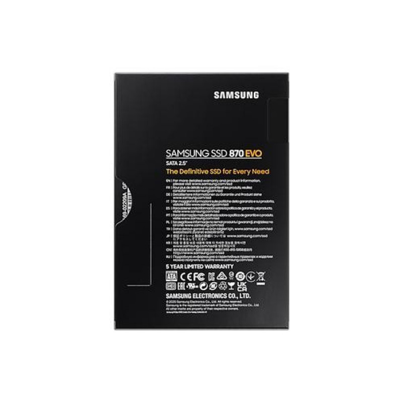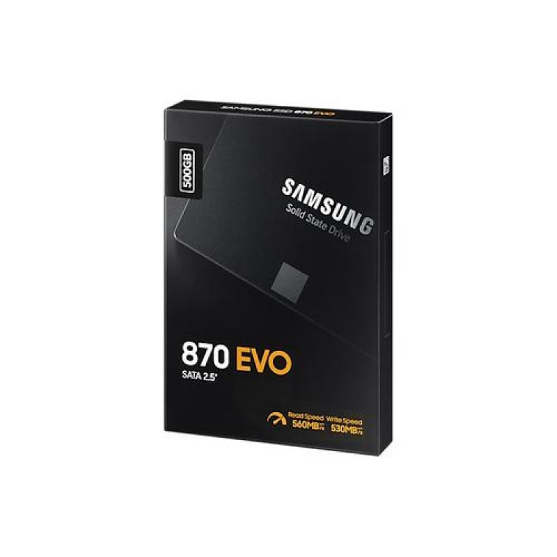 <b>The world’s favorite SSD</b><br>The latest model of the world’s best-selling SSD series has finally arrived. The 870 EVO inherits the legacy of Samsung’s pioneering SSD technology, boasting upgraded performance, reliability, and compatibility to suit the needs of anyone from contents creators, IT professionals, to everyday us<br><br><b>Excellence in performance</b><br>The 870 EVO achieves the maximum SATA interface limit of 560/530 MB/s sequential speeds. Everyday users can now enjoy professional-level SSD performance.Intelligent TurboWrite accelerates write speeds and maintains long-term high performance with a larger variable buffer.<br><br><b>Industry-defining reliability</b><br>Providing up to 2,400 TBW under a 5year limited warranty, the 870 EVO meets the industry’s leading standards of reliability. It withstands tasks from everyday computing to 8K video processing and comes equipped with the latest 6th Gen. VNAND and MKX controller that ensure a stable host experience.<br><br><b>More compatible than ever</b><br>The 870 EVO passed compatibility tests with major host systems and applications, including chipsets, motherboards, NAS, and video recording devices. As the latest entry in the globally best-selling EVO series, the 870 EVO‘s proven versatility is compatible with systems and tasks of any user.<br><br><b>Upgrade with ease</b><br>Upgrading to the 870 EVO is made easy for anyone with a desktop PC or laptop that supports a standard 2.5-inch SATA form factor. Enjoying this masterpiece SSD is as convenient as plugging in the 870 EVO into a SATA slot, and letting the renewed migration software take care of the rest.<br><br><b>Samsung Magician software</b><br>Make your drive work like magic. The new and improved Samsung Magician 6 software will keep your SSD in check. You can easily manage your drive with a wide range of useful tools to keep up with the latest updates, monitor the drive's health and status, or even enhance its performance.<br><br><b>World's No.1 Flash Memory</b><br>Experience the superior performance and reliability that you can only get from the world's number one brand for flash memory since 2003. All firmware and components, including Samsung's world-renowned DRAM and NAND, are produced in-house, allowing end-to-end integration for quality you can trust.Samsung 870 EVO. SSD capacity: 500 GB, SSD form factor: 2.5", Read speed: 560 MB/s, Write speed: 530 MB/s, Data transfer rate: 6 Gbit/s, Component for: PC