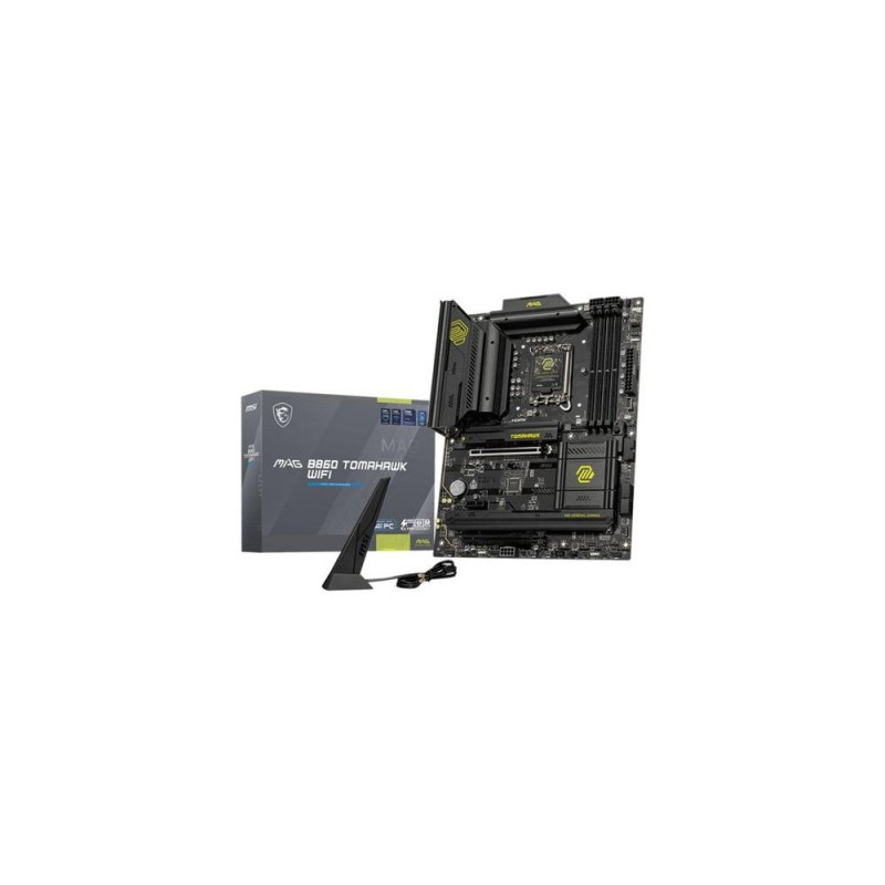 MAG B860 TOMAHAWK WIFI is designed for gamers with a stable, durable and DIY friendly foundation for their PC builds. Coming up with Killer Wi-Fi 7 solution and 5G LAN, Thunderbolt 4, PCIe 5.0 solutions, Supplemental PCIe Power and exclusive EZ DIY features, it's ready for the battlefied of Intel Core Ultra processors.<br><br>MSI MAG B860 TOMAHAWK WIFI. Processor manufacturer: Intel, Processor socket: LGA 1851 (Socket V1), Compatible processor series: Intel Core Ultra (Series 2). Supported memory types: DDR5-SDRAM, Maximum internal memory: 256 GB, Memory slots type: DIMM. Supported storage drive interfaces: M.2, Micro SATA III, Supported storage drive types: HDD & SSD, RAID levels: 0, 1, 5, 10. Ethernet interface type: 5 Gigabit Ethernet, Top Wi-Fi standard: Wi-Fi 7 (802.11be), Wi-Fi standards: 802.11a, 802.11b, 802.11g, Wi-Fi 4 (802.11n), Wi-Fi 5 (802.11ac), Wi-Fi 6 (802.11ax), Wi-Fi 6E.... Component for: PC, Motherboard form factor: ATX, Motherboard chipset family: AMD