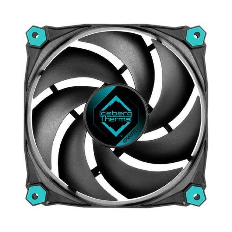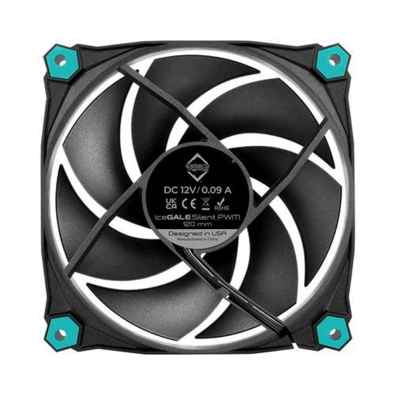 <b>So Quiet You Won’t Notice It’s There</b><br>Worry no longer as the IceGALE® Silent PWM runs at a virtually silent 21.8 dBA, making it quieter than a whisper.<br><br><b>Innovative New Fan Design</b><br>Iceberg Thermal has meticulously crafted a new fan design adding improvements from the blades to the frame, to provide more airflow and air pressure while remaining virtually silent.<br><br><b>Automatic START/STOP Function</b><br>Creates a quiet environment and reduces power consumption, decreasing heat, to create a more comfortable work/play experience. When the fan is in off mode it goes silent, until the PWM duty cycle reaches 21% loading.Iceberg Thermal IceGALE Silent PWM. Type: Fan, Fan diameter: 12 cm, Rotational speed (min): 600 RPM, Rotational speed (max): 1600 RPM, Noise level (high speed): 21.8 dB, Maximum airflow: 51 cfm, Maximum air pressure: 1.18 mmH2O, Bearing type: Sleeve bearing. Voltage: 12 V. Product colour: Black