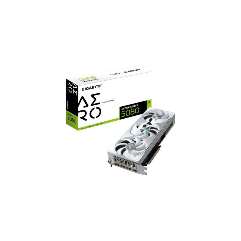 Unlock unparalleled gaming prowess with GIGABYTE's NVIDIA graphics cards. Engineered for peak performance and visual excellence, our GPUs redefine gaming standards. With advanced cooling solutions and cutting-edge technologies, GIGABYTE NVIDIA graphics cards deliver stunning visuals and seamless gameplay experiences, empowering gamers to dominate every virtual battlefield with confidence and precision.GIGABYTE GeForce RTX 5080 AERO OC SFF 16G Graphics Card - 16GB GDDR7, 256bit, PCI-E 5.0, 2730MHz Core Clock, 3 x DisplayPort, 1 x HDMI, GV-N5080AERO OC-16GD. Graphics processor family: NVIDIA, Graphics processor: GeForce RTX 5080, Processor frequency: 2730 MHz. Discrete graphics card memory: 16 GB, Graphics card memory type: GDDR7, Memory bus: 256 bit, Memory clock speed: 28000 MHz. Maximum resolution: 7680 x 4320 pixels. DirectX version: 12.0, OpenGL version: 4.6. Interface type: PCI Express 5.0. Cooling type: Active, Number of fans: 3 fan(s), Illumination colour: Multi
