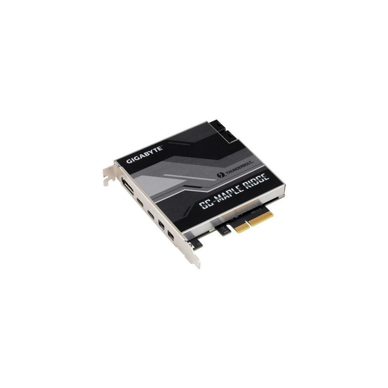<b>40 Gb/s Intel Thunderbolt 4 Certified Add-in Card</b><br>The GC-MAPLE RIDGE offers an easy way to upgrade GIGABYTE Thunderbolt ready motherboards with the new and faster Thunderbolt 4 connectivity without having to upgrade to a whole new system.<br><br><b>Dual Thunderbolt 4 – The fastest 40Gb/s single-wire connection</b><br>Delivers speeds of up to 40Gb/s-- that's 2 times faster than Thunderbolt 2 and 8 times faster than USB3. Thunderbolt 4 provides the fastest connection to any dock, display and device. A single port can daisy-chain up to 5 Thunderbolt devices without an additional hub or switch.<br><br><b>Daisy-chain Multiple Devices</b><br>Support for DisplayPort 1.4 makes Thunderbolt 4 a must have for any enthusiast. GIGABYTE GC-MAPLE RIDGE support two displays in 4K resolution at 60 FPS. In addition, Thunderbolt 4 over USB Type-C has revolutionary industry-first features such as Power Delivery 3.0, and the ability to daisy-chain up to 10 devices thanks to the dual USB Type-C ports.<br><br><b>Certified Motherboards with GC-MAPLE RIDGE</b><br>The GC-MAPLE RIDGE is compatible with GIGABYTE motherboards that featured a Thunderbolt header, refer the list as below.GIGABYTE GC-MAPLE RIDGE. Host interface: PCIe, Output interface: DisplayPort, Mini DisplayPort, Thunderbolt 4, USB 3.2 Gen 2 (3.1 Gen 2). Product colour: Black, Grey. Data transfer rate (max): 40 Gbit/s