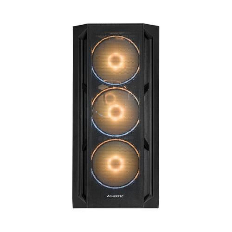 The CHIEFTEC APEX Lumo presents an E-ATX chassis with a large mesh front panel and tempered glass on the left side, including 4 pre-installed 140mm ARGB PWM fans that provide impressive style and powerful cooling.<br><br>The use of 140mm ARGB fans, pre-installed with a control hub featur-ing A-RGB M/B Sync as well as PWM fan speed control, offer an ideal combination of style, airflow and noise.The case itself is generous with space, offering support for GPUs up to 400mm in length, CPU coolers up to 175mm in height, and radiators support up to 360mm at the top and up to 420mm in the front.<br><br>The CHIEFTEC APEX Lumo is ready to bring both aesthetics and better cooling to modern gaming systems.Chieftec PC- Gehäuse GA-01B-L-OP APEX LUMO. Form factor: Midi Tower, Type: PC, Product colour: Black. Front fans installed: 4 x 140 mm, Front radiator sizes supported: 240,280,360,420 mm, Top radiator sizes supported: 240,280,360 mm. Supported HDD sizes: 2.5,3.5". Width: 230 mm, Depth: 465 mm, Height: 495 mm. Package weight: 9.15 kg