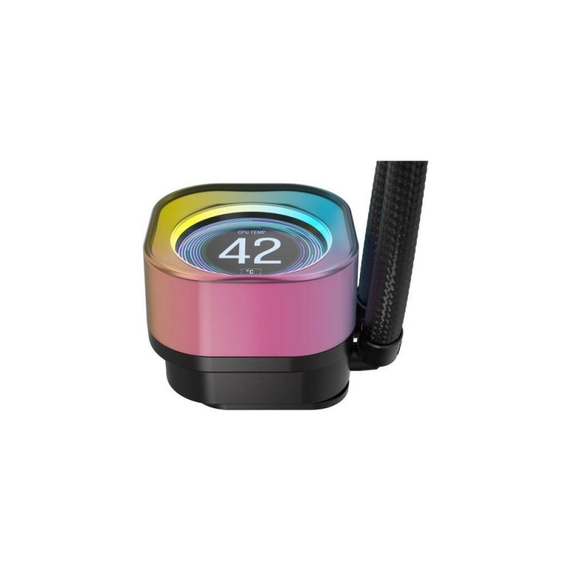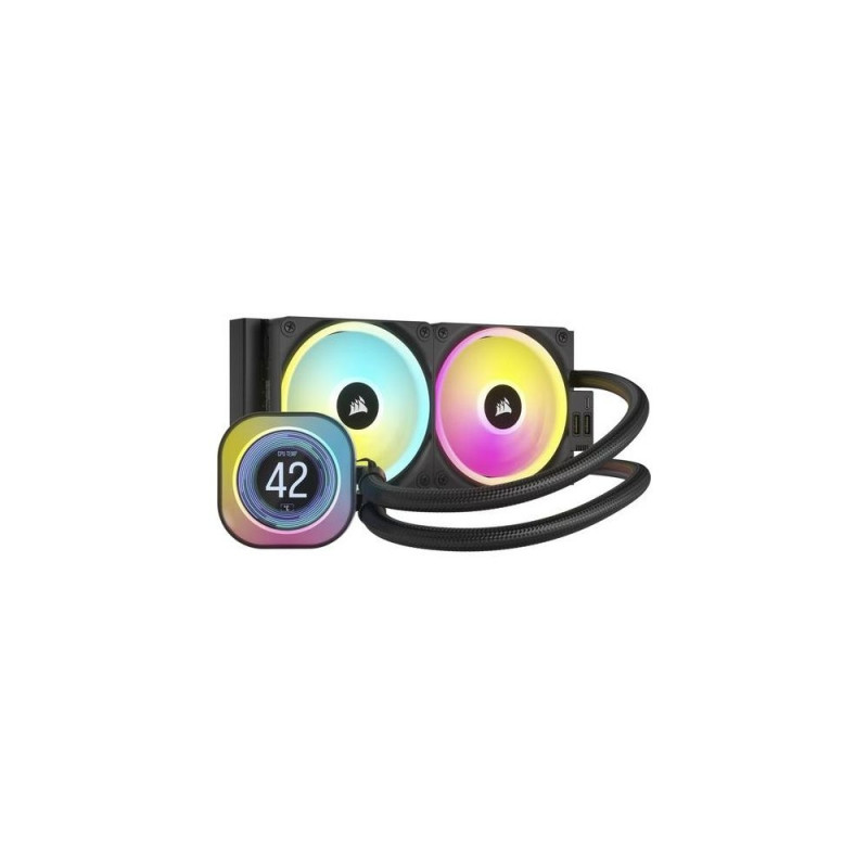 <b>iCUE LINK H100i LCD Liquid CPU Cooler</b><br>A powerful all-in-one CPU cooler with an ultra-bright 2.1" IPS LCD screen, leveraging revolutionary iCUE LINK technology for easier, faster, and cleaner building than ever before.<br><br><b>iCUE LINK H170i LCD<br>240mm ALL-IN-ONE CPU COOLER<br>SIMPLICITY AT ITS BEST</b><br><b>BUILD BETTER. BUILD SMARTER.</b><br>Redefine the way you build a DIY PC with a groundbreaking single-cable technology that automatically detects and configures your PC fans, CPU coolers, and other internal components.<br><br><b>THE EASY WAY TO BUILD A PC</b><br>Reduce cable clutter with a network of smart, interconnected components.<br><br><b>LINK YOUR COMPONENTS</b><br>The iCUE LINK ecosystem uses a single connector for all iCUE LINK devices.<br><br><b>UNITE YOUR SETUP</b><br>Each component connects directly to the next, creating a chain of devices.<br><br>B<b>RILLIANT IPS LCD DISPLAY</b><br>A custom 2.1" IPS LCD screen with 480x480 resolution and an ultra-bright 600cd/m² backlight displays real-time CPU temperature, your favorite animated GIF, funniest meme, or your team’s logo at 30 FPS in over 16.7 million colors.<br><br><b>LIGHT YEARS AHEAD</b><br>- <b>EFFICIENT AND QUIET CPU COOLING</b><br>High-performance pump head and split-flow copper cold plate<br>- <b>EFFORTLESS INSTALLATION</b><br>Single cable connects to included hub with automatic installation<br>- <b>UNPARALLELED LIGHTING</b><br>QX RGB fans with 34 LEDs per fan and exclusive Time Warp lighting mode<br><br><b>NEXT-GEN AIO CPU COOLING</b><br>Boost your processor's performance with a split-flow copper cold plate with pre-applied CORSAIR XTM70 thermal paste. QX140 RGB fans ramp up to 2,000 RPM, complete with stunning lighting and next to no wiring for a flawless look.<br><br>- <b>IN THE SPOTLIGHT</b><br>24 RGB LEDs encircling the screen and 20 LEDs on the pump base provide a brilliant backdrop, with hidden connections to ensure no distractions from the view. <br>- <b>YOUR SETUP AT YOUR COMMAND</b><br>Adjust fan and pump speeds, control and synchronize RGB lighting, and monitor CPU and coolant temperatures in iCUE. <br>- <b>iCUE LINK SYSTEM HUB INCLUDED</b><br>Included CORSAIR iCUE LINK System Hub - connect up to 14 iCUE LINK devices (seven per port) in any order.<br><br><b>ZERO RPM MODE</b><br>PWM control lets you precisely set fan speeds so your fans only spin as fast as they need to, resulting in less fan noise overall, while support for Zero RPM means they can stop spinning completely at low loads.<br><br><b>EXTREME PERFORMANCE THERMAL PASTE</b><br>All iCUE LINK LCD AIOs include pre-applied CORSAIR XTM70 Extreme Performance thermal paste for maximum heat transfer from your high-end processor to the cooler cold plate.<br><br>For reliably high cooling performance, every step in the heat transfer and dissipation chain matters.<br><br><b>LOOK YOUR BEST</b><br>Stand out with the perfect blend of performance<br>and aesthetics.<br><br>Don't just build a PC, create a masterpiece.Corsair CW-9061007-WW. Type: Air cooler, Fan diameter: 12 cm, Rotational speed (min): 480 RPM, Rotational speed (max): 2400 RPM, Maximum airflow: 63.1 cfm. Product colour: Black