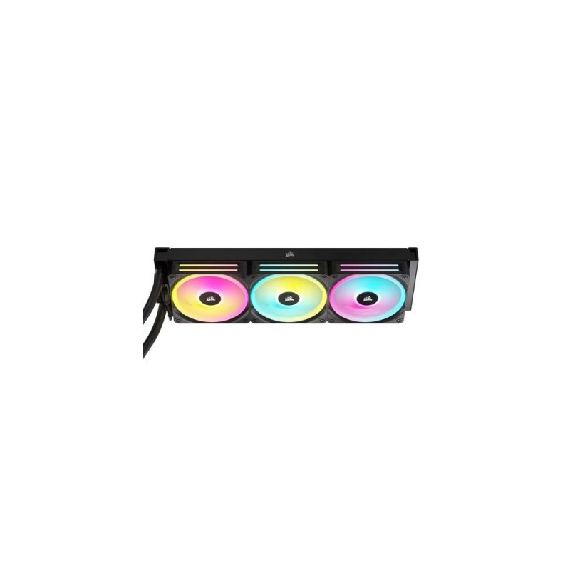 <b>iCUE LINK H150i RGB 360mm ALL-IN-ONE CPU COOLER</b><br><br><b>BUILD BETTER. BUILD SMARTER.</b><br>Redefine the way you build a DIY PC with a groundbreaking single-cable technology that automatically detects and configures your PC fans, CPU coolers, and other internal components.<br><br><b>THE EASY WAY TO BUILD A PC</b><br>Reduce cable clutter with a network of smart, interconnected components.<br><br><b>LINK YOUR COMPONENTS</b><br>The iCUE LINK ecosystem uses a single connector for all iCUE LINK devices.<br><br><b>UNITE YOUR SETUP</b><br>Each component connects directly to the next, creating a chain of devices.<br><br><b>LIGHT YEARS AHEAD<br>EFFICIENT AND QUIET CPU COOLING</b><br>High-performance pump head and split-flow copper cold plate<br><br><b>EFFICIENT AND QUIET CPU COOLING</b><br>High-performance pump head and split-flow copper cold plate<br><br><b>EFFORTLESS INSTALLATION</b><br>Single cable connects to included hub with automatic installation<br><br><b>UNPARALLELED LIGHTING</b><br>QX RGB fans with 34 LEDs per fan and exclusive Time Warp lighting mode<br><br><b>NEXT-GEN AIO CPU COOLING</b><br>Boost your processor's performance with a split-flow copper cold plate with pre-applied CORSAIR XTM70 thermal paste. QX140 RGB fans ramp up to 2,000 RPM, complete with stunning lighting and next to no wiring for a flawless look.<br><br><b>KEEP NOISE DOWN</b><br>Enjoy ultra-quiet performance under any conditions with auto-adjusting pump speeds, precisely controlled by iCUE software.<br>Temperature sensor located in each QX RGB fan.<br><br><b>YOUR SETUP AT YOUR COMMAND</b><br>Adjust fan and pump speeds, control and synchronize RGB lighting, and monitor CPU and coolant temperatures in iCUE.<br><br><b>iCUE LINK SYSTEM HUB INCLUDED</b><br>Included CORSAIR iCUE LINK System Hub - connect up to 14 iCUE LINK devices (seven per port) in any order.<br><br><b>ZERO RPM MODE</b><br>PWM control lets you precisely set fan speeds so your fans only spin as fast as they need to, resulting in less fan noise overall, while support for Zero RPM means they can stop spinning completely at low loads.<br><br><b>EXTREME PERFORMANCE THERMAL PASTE</b><br>All iCUE LINK RGB AIOs include pre-applied CORSAIR XTM70 Extreme Performance thermal paste for maximum heat transfer from your high-end processor to the cooler cold plate.<br>For reliably high cooling performance, every step in the heat transfer and dissipation chain matters.<br><br><b>LOOK YOUR BEST</b><br>Stand out with the perfect blend of performance<br>and aesthetics.<br>Don't just build a PC, create a masterpiece.<br> <br><b>WORLD-CLASS SUPPORT</b><br>Our award-winning service means you can enjoy your gear worry-free.<br><br><b>UNITE YOUR SETUP</b><br>CORSAIR iCUE software brings your entire setup together, creating a fully immersive ecosystem with intuitive control.Corsair H150I. Type: All-in-one liquid cooler, Fan diameter: 12 cm, Maximum airflow: 63.1 cfm, Minimum air pressure: 0.17 mmH2O, Maximum air pressure: 3.8 mmH2O. Product colour: Black