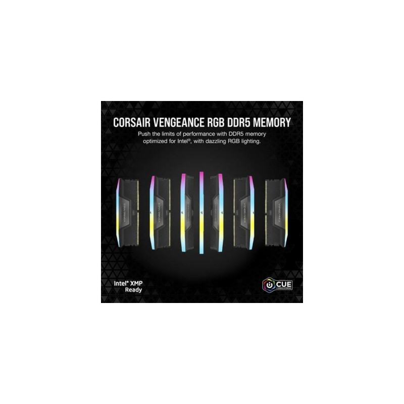 <b>VENGEANCE RGB DDR5 DRAM<br>DDR5 DRAM FOR INTEL</b><br>Push the limits of your system like never-before with DDR5,<br>unlocking even faster frequencies, greater capacities, and<br>better performance.<br><br><b>DO IT ALL, AND DO IT FASTER</b><br>In the multi-core era, the unprecedented processing speed of DDR5 DRAM ensures your high-end CPU gets data quickly with ease. Whether you are gaming, creating content, opening 100 tabs, or multi-tasking, your gaming PC can power through complex tasks faster than ever before.<br><br><b>DYNAMIC TEN-ZONE RGB LIGHTING</b><br>Illuminate your system with ten individually addressable, ultra-bright RGB LEDs per module, encased in a panoramic light bar.<br>Select from dozens of stunning pre-set lighting profiles, or create your own with near-limitless customization in iCUE.<br><br><b>ONBOARD VOLTAGE REGULATION</b><br>You have the power and the control. Built-in voltage regulation plus iCUE software control makes for easier, finely-tuned output that provides more stable overclocking than ever.<br><br><b>CUSTOM INTEL® XMP 3.0 PROFILES</b><br>Ditch the tedious process of manually adjusting your performance settings each time when you save your own XMP profiles through iCUE.<br>Easily customize and tailor your setting profiles by app or task for greater efficiency.<br><br><b>MAXIMUM BANDWIDTH, TIGHT RESPONSE TIMES</b><br>Optimized for maximum bandwidth and tight response times on the latest Intel® DDR5 compatible motherboards.<br><br><b>HAND-SORTED, TIGHTLY-SCREENED MEMORY CHIPS</b><br>Ensure consistent high-frequency performance with aggressive timing options.<br><br><b>CUSTOM PERFORMANCE PCB</b><br>Guarantees signal quality and stability, for superior overclocking ability.<br><br><b>SOLID ALUMINUM HEATSPREADER</b><br>Conducts heat away from your memory quickly, with refined VENGEANCE dual-tone styling to fit the look of modern systems.<br><br><b>WIDE COMPATIBILITY</b><br>Optimized for the latest generation of DDR5 compatible INTEL® Motherboards.<br><br><b>LIMITED LIFETIME WARRANTY</b><br>For complete peace of mind and years of worry-free performance.Corsair Vengeance RGB CMH48GX5M2B7200C36. Component for: PC/Server, Internal memory: 48 GB, Memory layout (modules x size): 2 x 24 GB, Internal memory type: DDR5, Memory clock speed: 7200 MHz, Memory form factor: 288-pin DIMM, CAS latency: 36