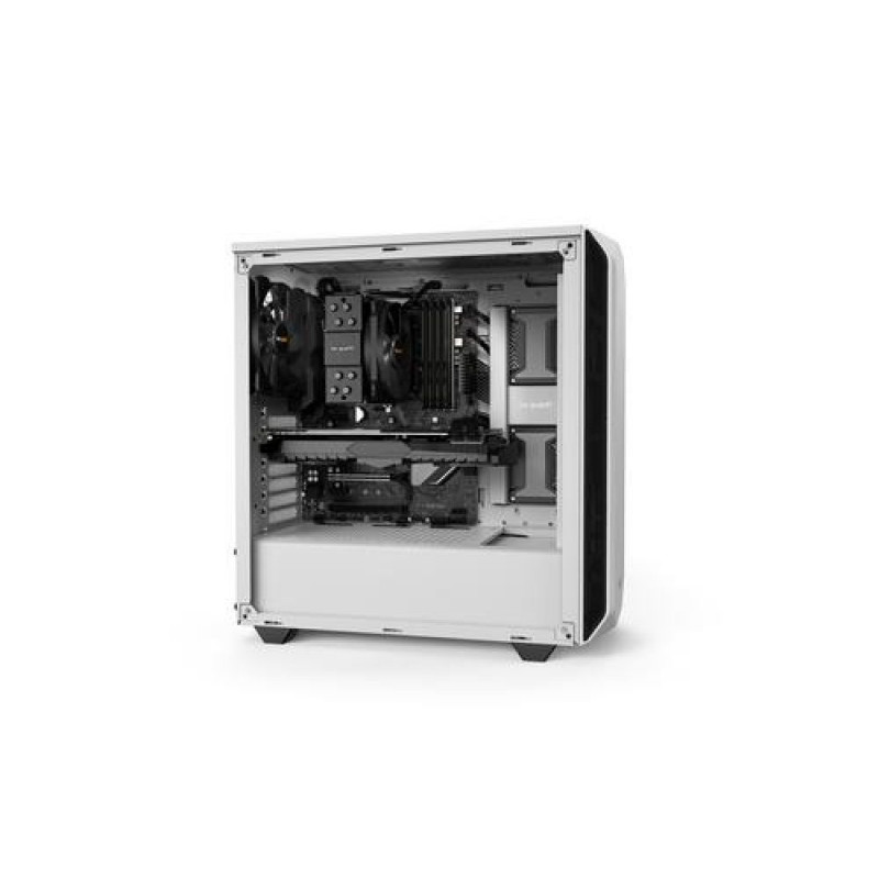 <b>Outstanding price-performance ratio</b><br><br>be quiet! Pure Base 500 White combines customizable and silence features with a compact and sophisticated design. It is the perfect case for all who value compactness and highly functional features.<br><br><b>REGULAR TOP COVER</b><br>Perfect for silent air-cooled systems<br>The regular top cover perfectly rounds off the design of the Pure Base 500. An insulation mat attached underneath ensures a silent operation. It is the perfect choice for air-cooled systems and regular, silent PC configurations. Strong magnets make sure the top covers fits firmly.<br><br><b>HIGH-PERFORMANCE TOP COVER</b><br>Maximum airflow for water-cooled configurations<br>For all who strive for maximum performance and especially with water-cooled systems, the extremely air-permeable top cover is the right choice. It is made of light meshed fabrics, ensuring the highest airflow possible.<br><br><b>TWO PREINSTALLED PURE WINGS 2</b><br>Whisper-quiet operation<br>Two preinstalled Pure Wings 2 fans with airflow-optimized fan blades that ensure perfect airflow and cooling. Despite the compact case design the front and rear fans are both 140mm models, resulting in very quiet operation. Up to three 140mm fans can be installed in addition.<br><br><b>NOISE DAMPENING</b><br>Achieving great silence and stability<br>The front, sides and regular top cover are equipped with insulation mats that result in great stability and improved noise dampening capabilities. The dust filters on the front and bottom are easy to remove for cleaning.<br><br><b>SOPHISTICATED DESIGN</b><br>Generous space for high-end hardware<br>The Pure Base 500 provides generous dimensions to install high-end graphics cards and large coolers of up to 190mm in height. Fans or a radiator up to 360mm can be installed easily at the front and the top area also provides space for more fans or a radiator up to 240mm.<br><br><b>FUNCTIONAL CABLE ROUTING</b><br>And great cable routing possibilities<br>Pure Base 500 offers various possibilities for installing up to 5 SSDs in total. To hide any unwanted cables, the case offers excellent cable routing options.<br><br><b>FUNCTIONAL PSU SHROUD</b><br>Offering a neat interior<br>The PSU shroud perfectly covers the cables and PSU. It also contains a double HDD cage with decoupled mountings that reduce vibrations and help maximize the silence. The cage can also be repositioned to install a radiator of up to 360mm at the front. The power supply unit can be easily installed from behind, mounted on the PSU bracket provided.<br>be quiet! Pure Base 500 White. Form factor: Midi Tower, Type: PC, Product colour: White. Power supply location: Bottom, Supported power supply form factors: ATX, PS2. Front fans installed: 1x 140 mm, Front fans diameters supported: 120,140 mm, Rear fans installed: 1x 140 mm. Supported HDD sizes: 2.5,3.5". Width: 231 mm, Depth: 450 mm, Height: 443 mm
