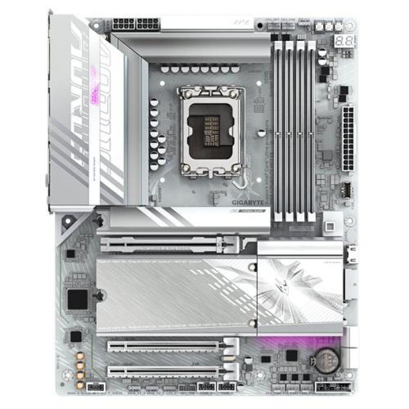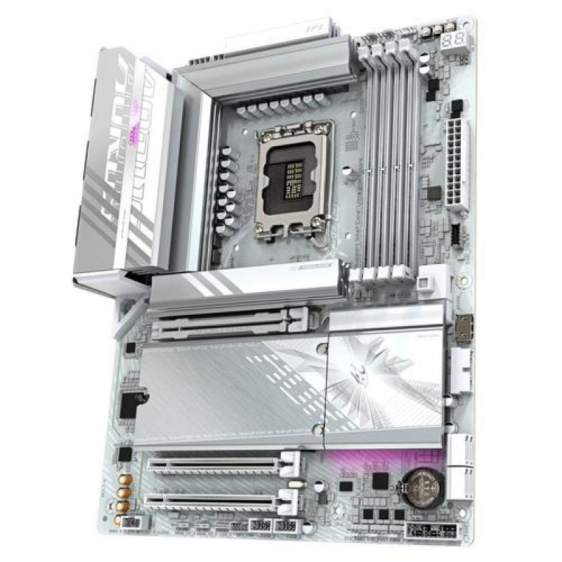 Elevate your computing experience with GIGABYTE's renowned motherboard series: AORUS, AERO, and GIGABYTE. Featuring innovative designs and advanced features, these boards offer exceptional performance and reliability. Whether you're a gamer, content creator, or professional, our series cater to your needs, ensuring uncompromising quality and cutting-edgeGIGABYTE B860 AORUS ELITE WIFI7 ICE Motherboard - Intel Core Ultra Series CPUs, 14+1+2+1 Phases VRM, up to 9200MHz DDR5, 1xPCIe 5.0 + 2xPCIe 4.0 M.2, 2.5GbE LAN, WIFI 7, USB 4. Processor manufacturer: Intel, Processor socket: LGA 1851 (Socket V1), Compatible processor series: Intel® Core™ Ultra (Series 1), Intel Core Ultra (Series 2). Supported memory types: DDR5-SDRAM, Maximum internal memory: 256 GB, Memory slots type: DIMM. Supported storage drive interfaces: M.2, SATA III, Supported storage drive types: HDD & SSD, RAID levels: 0, 1, 5, 10. Maximum resolution: 4096 x 2160 pixels. Ethernet interface type: 2.5 Gigabit Ethernet, LAN controller: Realtek RTL8125, Top Wi-Fi standard: Wi-Fi 7 (802.11be)