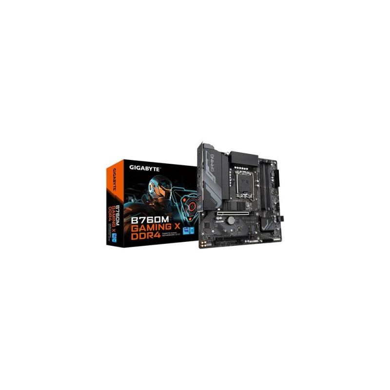 Elevate your computing experience with GIGABYTE's renowned motherboard series: AORUS, AERO, and GIGABYTE. Featuring innovative designs and advanced features, these boards offer exceptional performance and reliability. Whether you're a gamer, content creator, or professional, our series cater to your needs, ensuring uncompromising quality and cutting-edgeGIGABYTE B760M GAMING X DDR4 Motherboard - Supports Intel Core 14th Gen CPUs, 8+1+1 Phases Digital VRM, up to 5333MHz DDR4 (OC), 2xPCIe 4.0 M.2, 2.5GbE LAN, USB 3.2 Gen2. Processor manufacturer: Intel, Processor socket: LGA 1700, Compatible processor series: Intel® Celeron®, Intel® Core™ i3, Intel® Core™ i5, Intel® Core™ i7, Intel® Core™ i9,.... Supported memory types: DDR4-SDRAM, Maximum internal memory: 128 GB, Memory slots type: DIMM. Supported storage drive interfaces: M.2, SATA III, Supported storage drive types: HDD & SSD, RAID levels: 0, 1, 5, 10. Maximum resolution: 4096 x 2304 pixels. Ethernet interface type: 2.5 Gigabit Ethernet